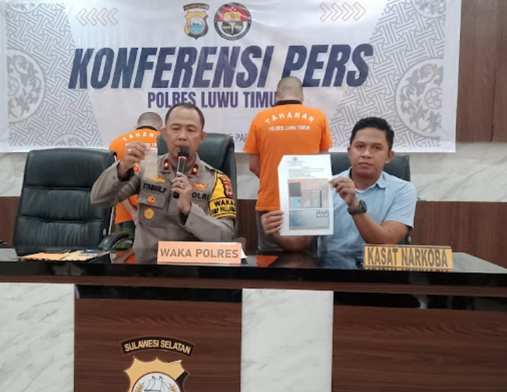 Hal tersebut disampaikan oleh Wakapolres Luwu Timur Kompol Syamsul dan Kasat Narkoba Polres Luwu Timur Iptu Andi Imran saat melakukan konferensi Pers di aula Tribrata.Senin,(09/12/2024).