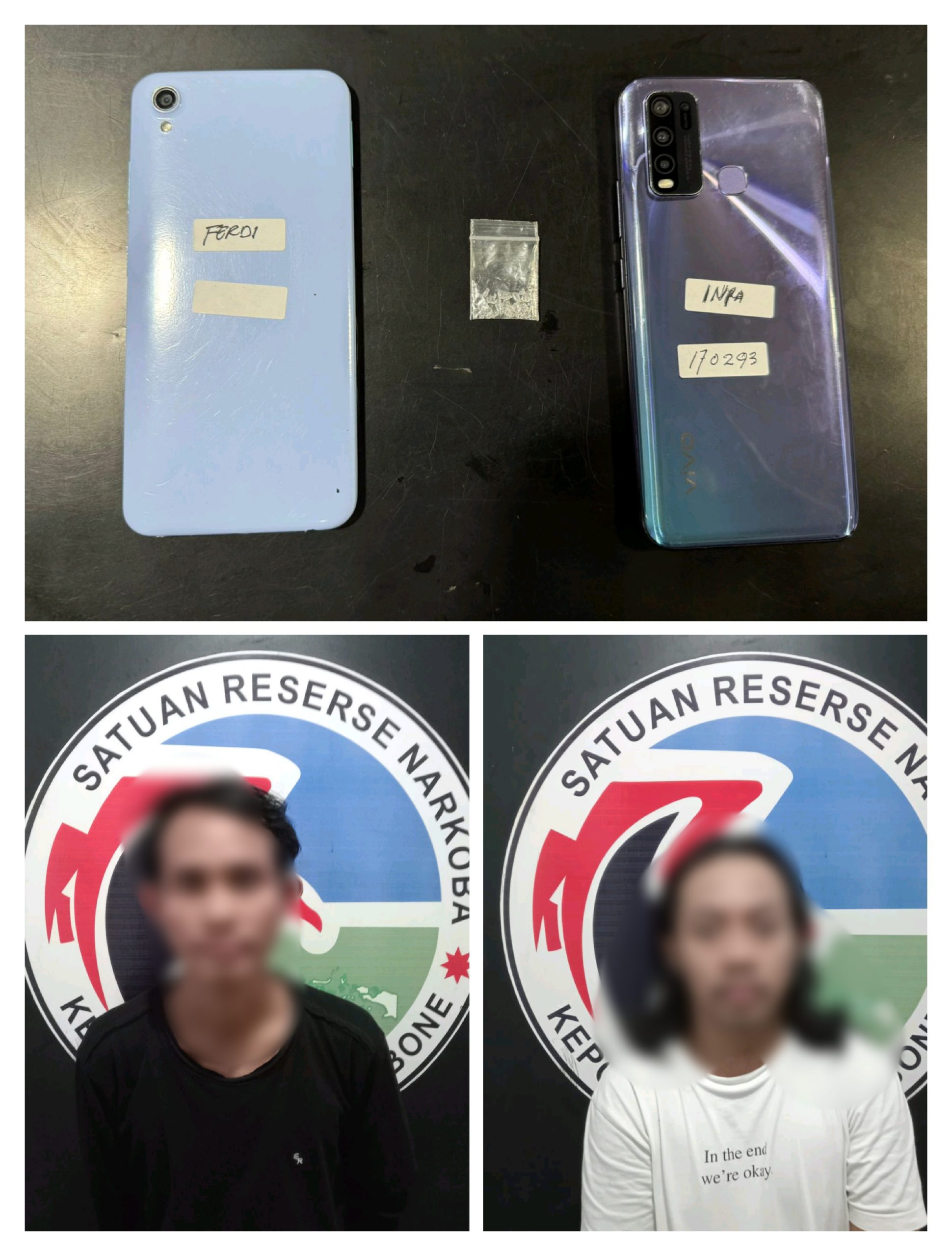 BONE – Kapolres Bone AKBP Erwin Syah, S.I.K.M.H melalui Kasat Narkoba Polres Bone AKP Yusriadi Yusuf mengatakan bahwa, ada dua pelaku yang berhasil diamankan, yaitu Ferdi (24) alamat Jalan Hos Cokroaminoto dan Indra Yusuf(31) Alamat Desa Watu, Kecamatan, Barebbo.