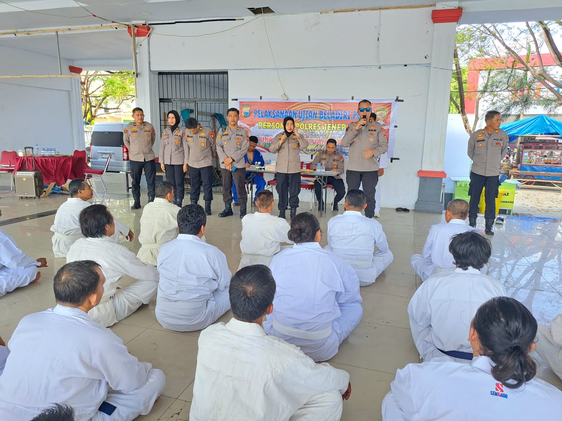 Makassar – Sulsel, sebanyak 28 personel Polres Jeneponto mengikuti ujian beladiri naik pangkat periode 1 Januari 2025.