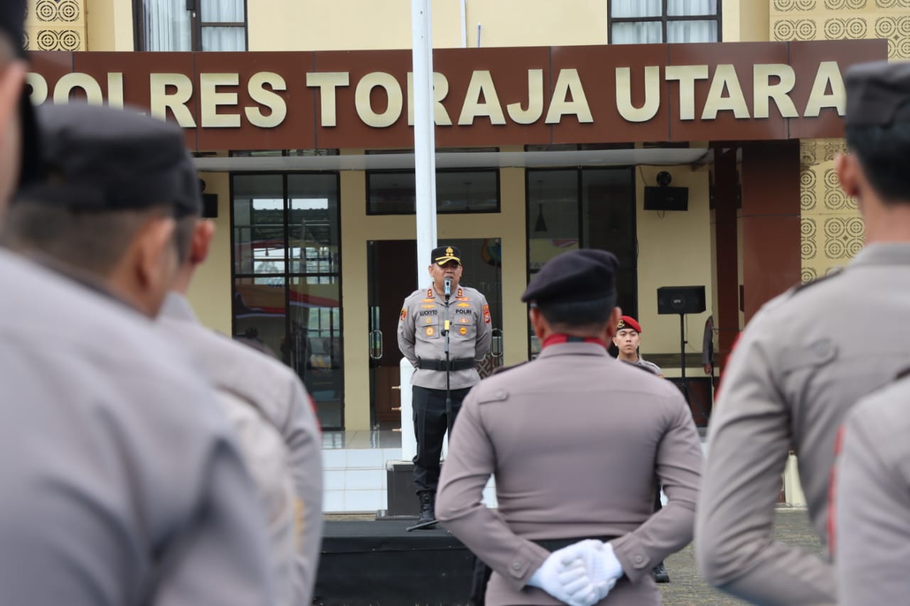 Upacara yang digelar dipimpin langsung Kapolres Toraja Utara AKBP Stephanus Luckyto A.W, S.I.K., S.H., M.Si, dengan dihadiri oleh para Pejabat Utama, Kapolsek Jajaran, serta para Perwira dan Bintara Polres Toraja Utara.