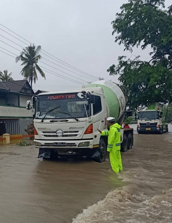 Kanit Turjawali IPDA Firman Usman mengatakan’pantauan tersebut untuk  mengantisipasi kendaraan yang melintas baik pengguna roda dua maupun pengguna roda empat yang biasa melewati jalur untuk sementara putus nya arus lalulintas di jalan poros tersebut.