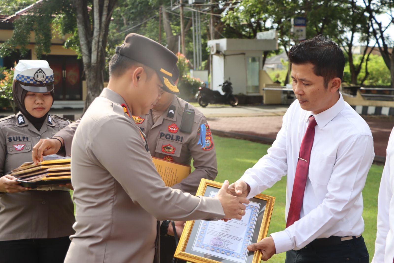 Penyerahan piagam penghargaan yang digelar secara seremonial sesuai dengan Surat Keputusan Kapolres Luwu Nomor: KEP/8/III/2024, tanggal 4 Maret 2024.