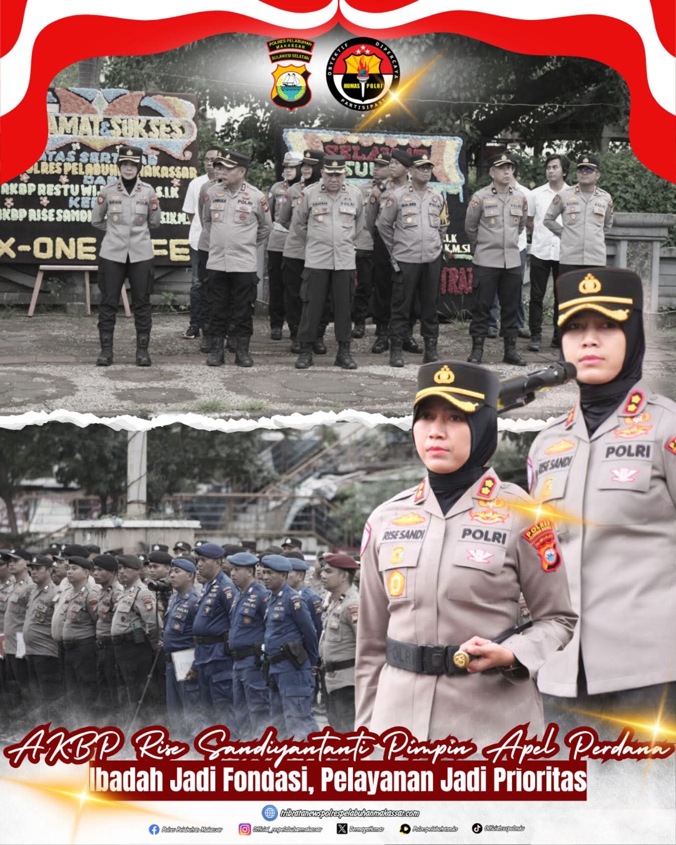 HUMDER — Kapolres Pelabuhan Makassar yang baru, AKBP Rise Sandiyantanti, memulai kiprahnya dengan pesan yang menyentuh dan membangkitkan semangat spiritual. Dalam apel pagi perdana yang digelar di depan Mapolres Pelabuhan Makassar, Kamis (10/4/25), ia tampil sebagai pemimpin yang tak hanya menekankan profesionalisme, tetapi juga nilai-nilai religius sebagai pondasi dalam menjalankan tugas.