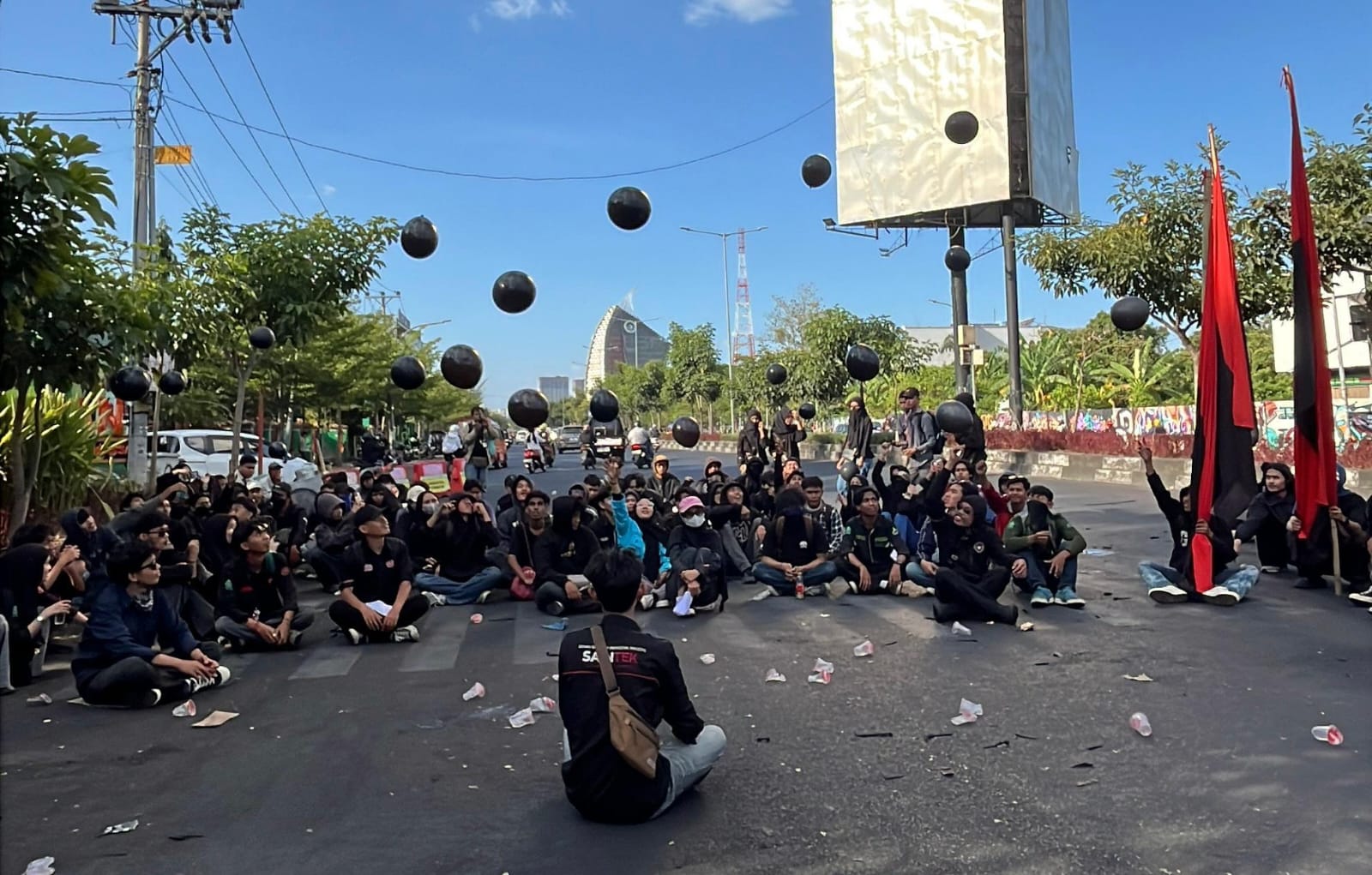 Acara yang dipimpin oleh Ketua Umum DEMA Fakultas Sains dan Teknologi, Muh. Alwi Nur yang juga selaku jenderal lapangan, ini berlangsung dengan damai Sebagai simbol duka mendalam, setiap peserta membawa balon hitam. Setelah dipanjatkan doa, dilepaskan bersamaan ke udara. Pemandangan balon hitam yang melayang menjadi pengingat, bahwa di balik setiap data yang kita proses, ada nyawa yang hilang dan duka yang nyata.