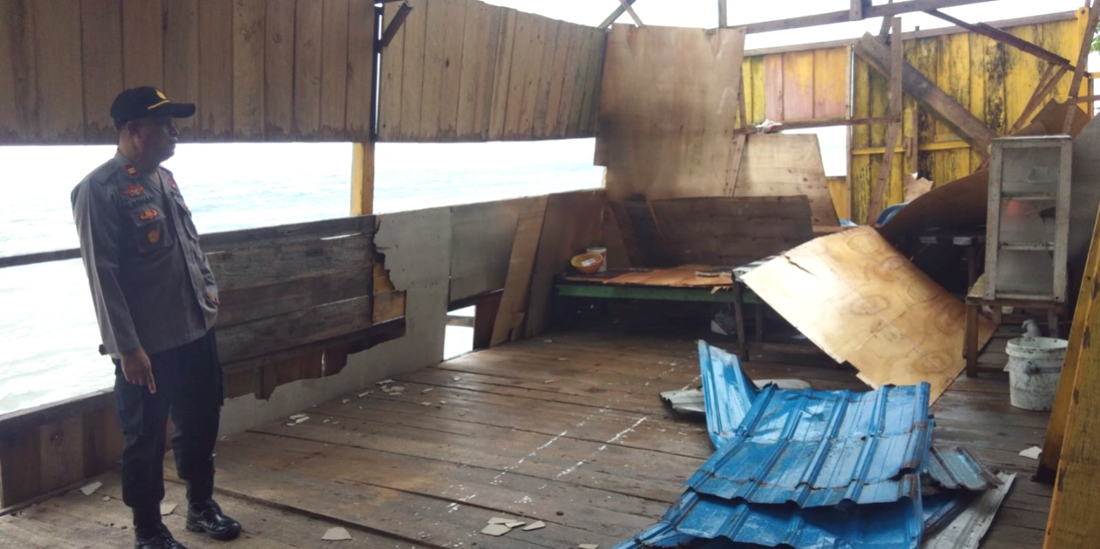 “Atap warung terlepas dan terbang terbawa angin, dinding warung pun ikut rusak, serta perabotan di dalamnya berantakan dan mengalami kerusakan,” jelas Iptu H. Ashari.