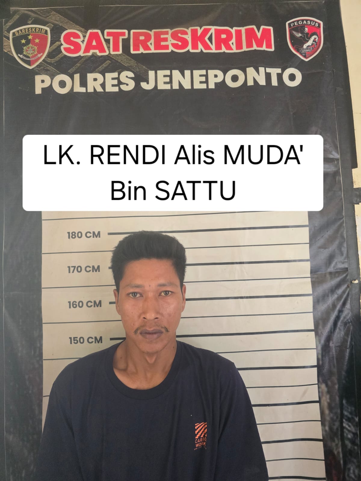Pelaku berhasil ditangkap di tempat pelarian di Dusun Bontoparang, Desa Bontoparang, Kecamatan Mangarabombang, Kabupaten Takalar (Sabtu 15 Juni 2024), di rumah kerabatnya oleh unit lapangan sat. Reskrim polres Jeneponto selanjutnya pelaku ditahan di rutan Polres Jeneponto guna proses penyidikan lebih lanjut.