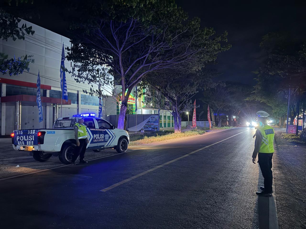 Polres Majene – Untuk mengantisipasi pelanggaran lalu lintas serta aksi balap liar yang kerap terjadi pada malam hari, personel Satuan Lalu Lintas (Satlantas) Polres Majene menggelar Patroli Blue Light di sejumlah ruas jalan trans Sulawesi, Kamis malam (2/4/26) hingga dini hari.