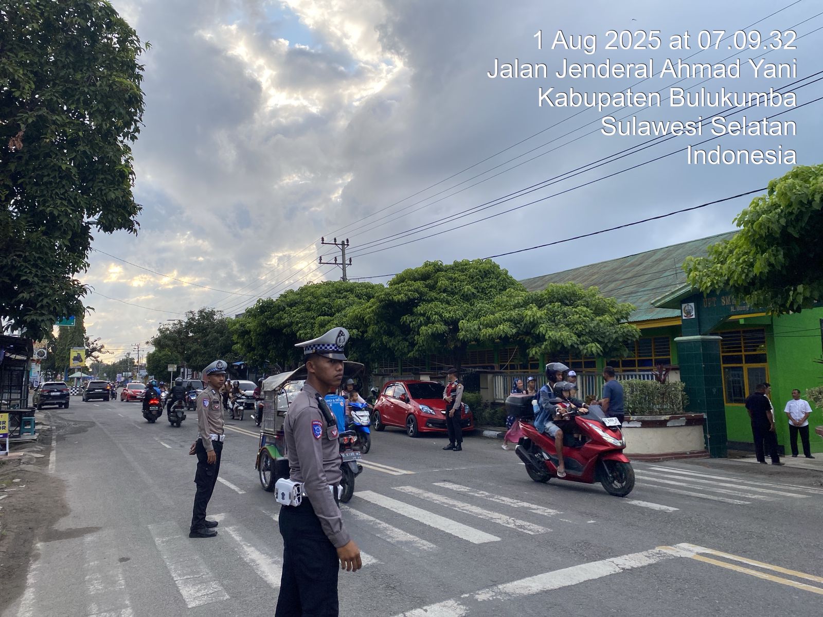 Kegiatan ini dilaksanakan di beberapa lokasi strategis, seperti depan sekolah, pasar, simpang jalan, dan pusat aktivitas masyarakat. Salah satu titik pengaturan pagi terlihat di Jalan Jenderal Ahmad Yani, tepatnya di depan SMA Negeri 1 Bulukumba, di mana personel Satlantas aktif membantu menyeberangkan siswa dan mengatur kendaraan bermotor.