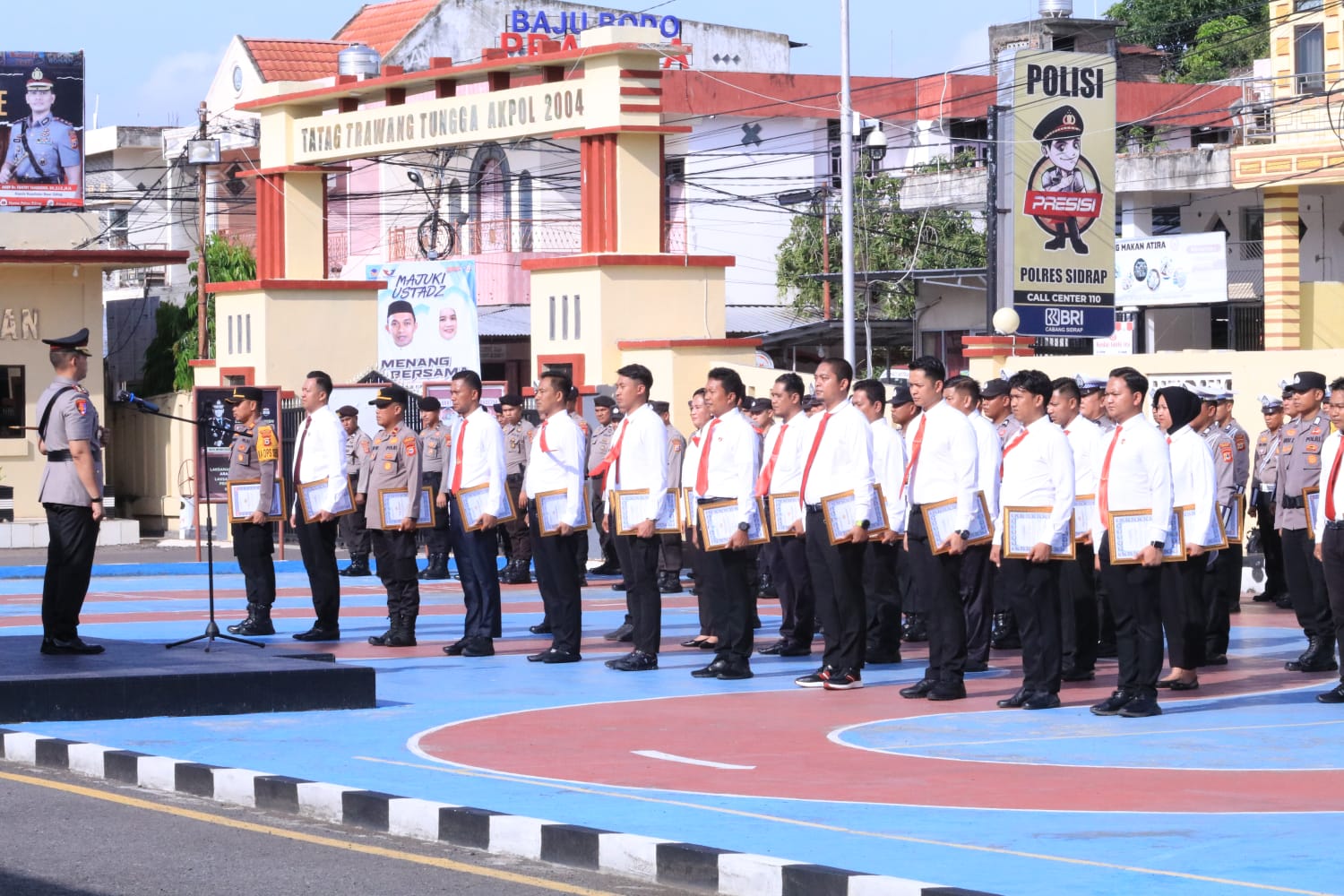 SIDRAP – Pimpin apel pagi jam pimpinan Kapolres Sidrap AKBP Dr. Fantry Taherong. SH.,S.I.K.,MH, menyerahkan penghargaan Kapolda Sulsel di rangkaikan pemberian penghargaan Kapolres Sidrap kepada sejumlah anggota Polres Sidrap yang telah menunjukkan dedikasi dan prestasi luar biasa dalam melaksanakan tugas. Acara pemberian penghargaan ini berlangsung di lapangan apel Mapolres Sidrap, Senin (30/09/24).