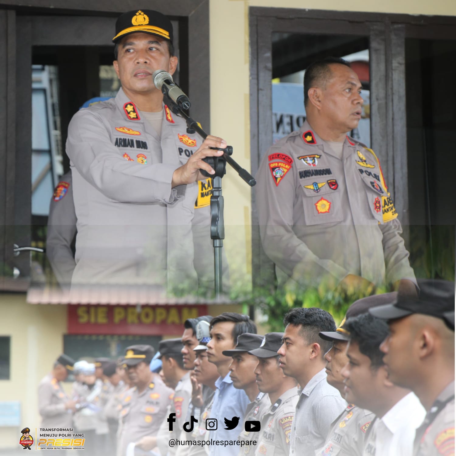 Apel kesiapan itu berlangsung di halaman Mako Polres Parepare Jl. Andi Mappatola, Kelurahan Ujung Baru, Kecamatan Soreang, Kota Parepare dipimpin langsung oleh Kapolres Parepare AKBP Arman Muis dan di hadiri oleh Para pejabat utama (PJU) polres beserta personel yang terlibat dalam PAM TPS di Parepare.