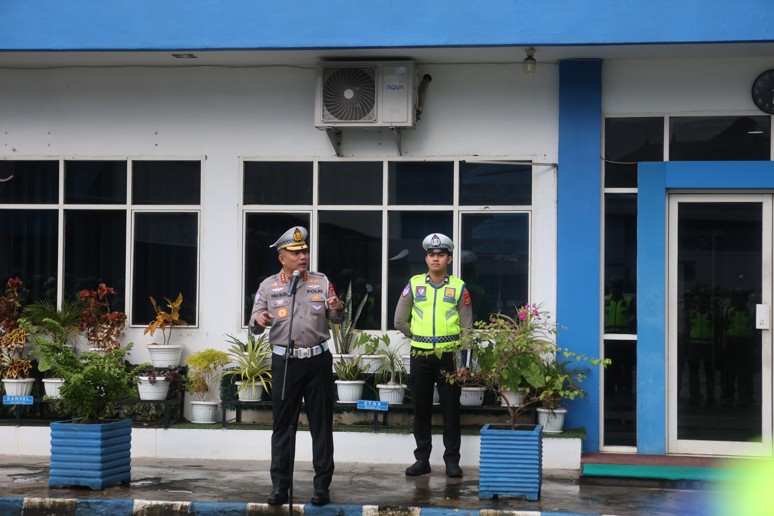 Makassar – Perdana, Direktur Lalu Lintas Polda Sulawesi Selatan Kombespol Dr. Pria Budi, S. I. K., M. H pimpin apel pagi perdana di Halaman Mako Ditlantas Polda Sulsel, Jalan A. P Pettarani, Kota Makassar. (Rabu, 21/01/2025)