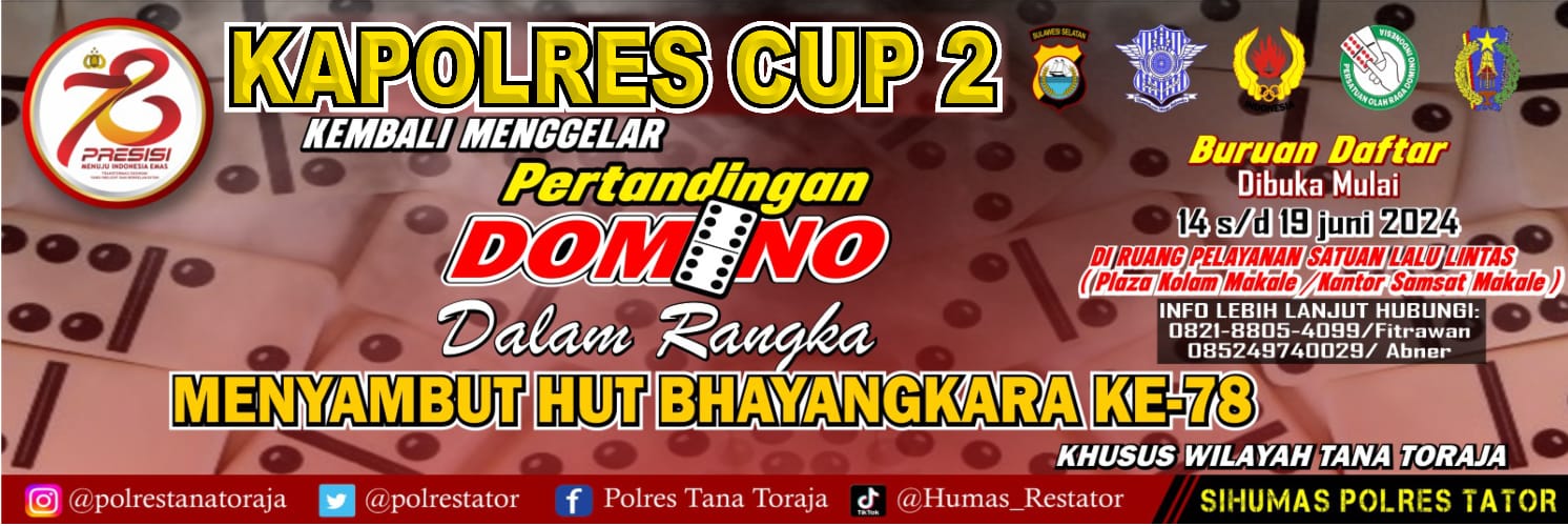 “Untuk menyukseskan acara ini kami juga bekerja sama dengan Perkumpulan Olahraga Domino (PORDI) Kabupaten Tana Toraja,” jelas Kapolres.