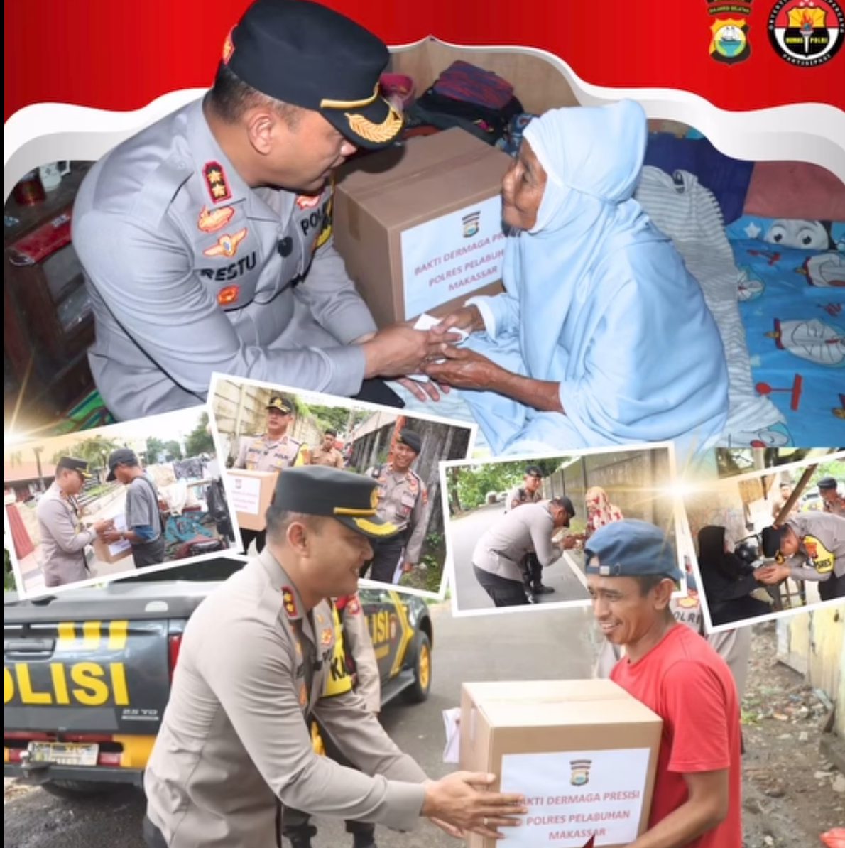 HUMDER — Dalam semangat kebersamaan dan kepedulian sosial, Kapolres Pelabuhan Makassar, AKBP Restu Wijayanto, mengisi bulan suci Ramadan dengan aksi nyata melalui program “Bakti Dermaga Presisi”. Melalui program ini, beliau langsung turun ke lapangan, mendatangi rumah-rumah para lansia yang membutuhkan, memberikan paket sembako guna membantu mereka dalam memenuhi kebutuhan sahur dan buka puasa.
