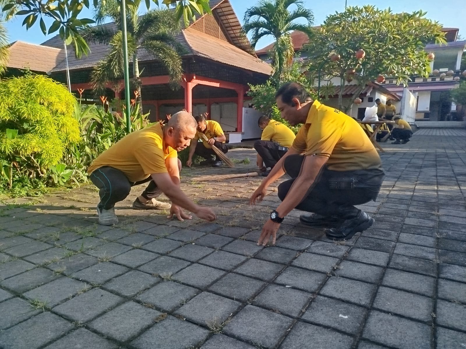 Bakti Religi, Polsek Klungkung Gelar Bersih Bersih Tempat Ibadah