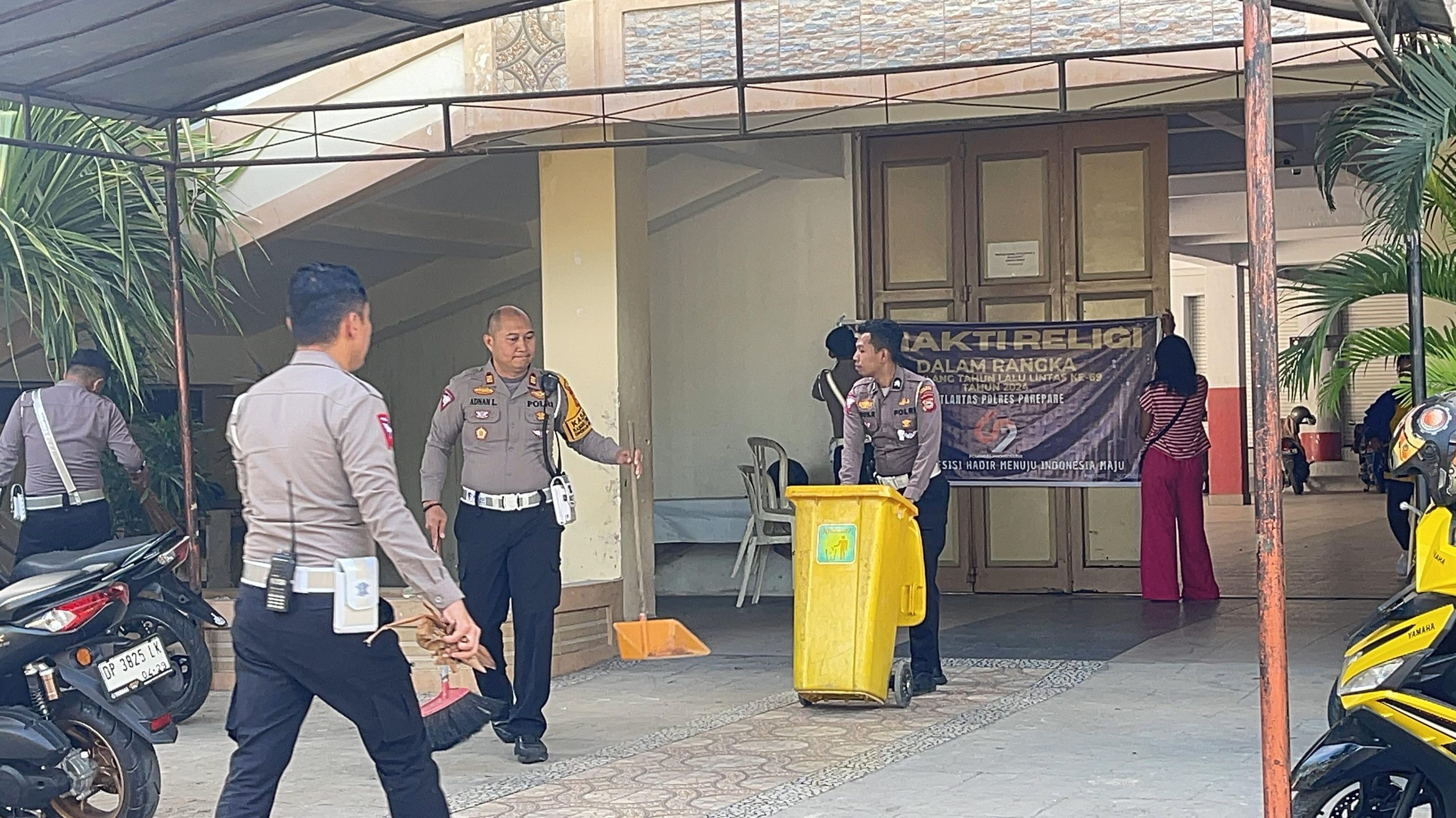 Parepare — Dalam rangka memperingati Hari Ulang Tahun Lalu Lintas yang ke-69, Sat Lantas Polres Parepare menggelar kegiatan bakti religi bersih – bersih tempat ibadah di sejumlah tempat ibadah di Kota Parepare. Kegiatan ini melibatkan seluruh personil Sat Lantas, yang di pimpin oleh Kasat Lantas Polres Parepare AKP. Adnan Leppang, S.H,M.H, selasa (3/9/2024).