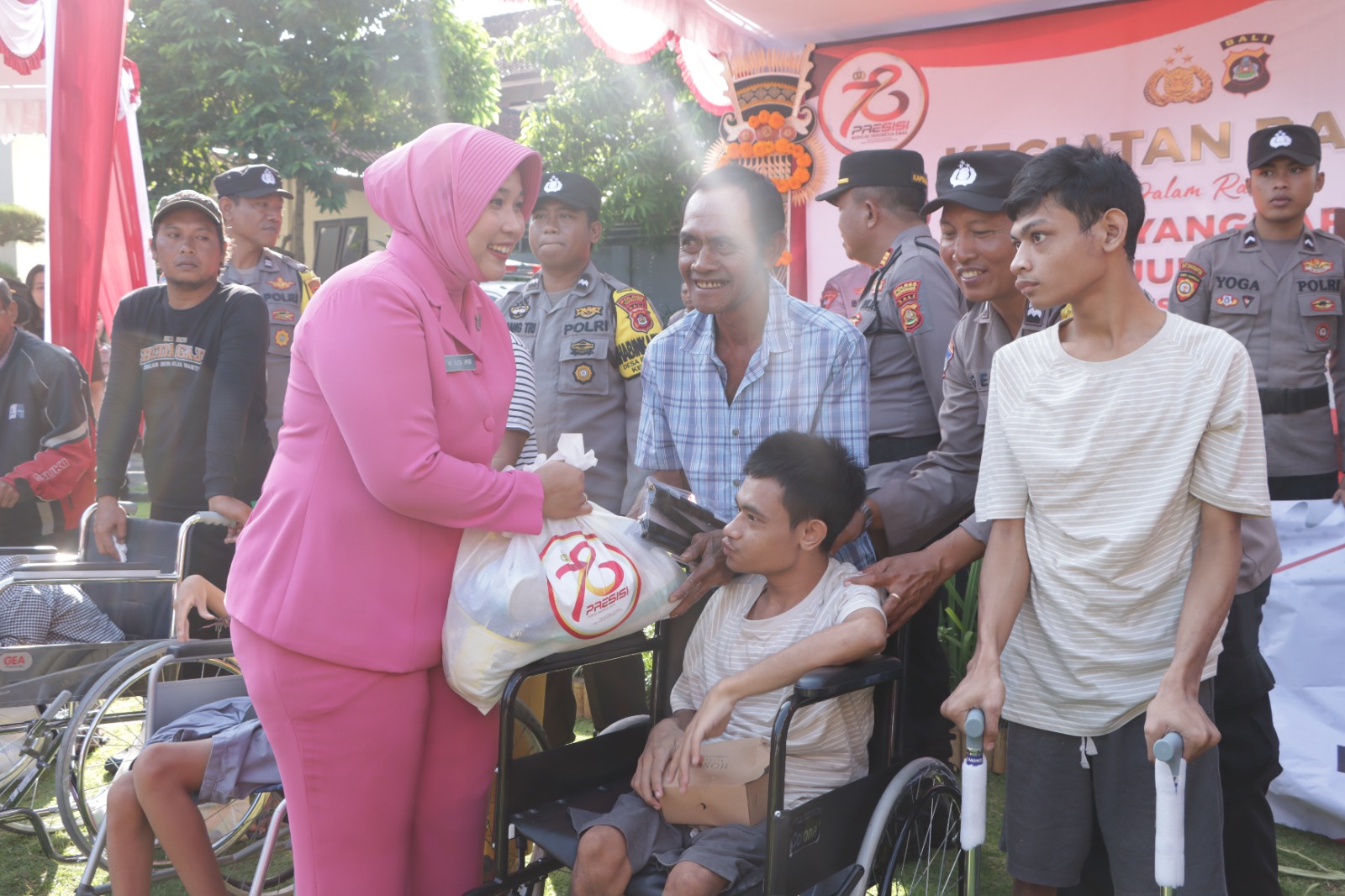 “Kegiatan ini merupakan bentuk kepedulian dan solidaritas kami terhadap warga masyarakat penyandang disabiltas khususnya di Wilayah Kabupaten Klungkung, apa yang kami berikan hari ini semoga bermanfaat kepada orang tua maupun kelurganya di rumah serta dapat mempererat tali silaturahmi Polri dengan seluruh lapisan masyarakat dalam memperingati Hari Bhayangkara Ke-78.” pungkasnya.