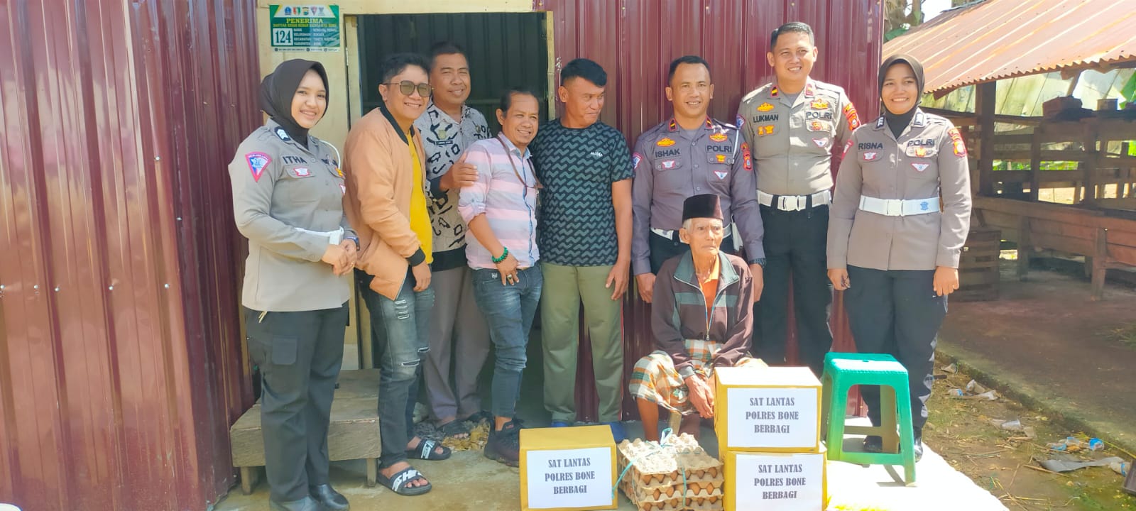 Berbagi Sembako, Polantas Bone Dan Komunitas Jurnalis Kunderuz Kunjungi Kakek Yang Hidup Sebatangkara