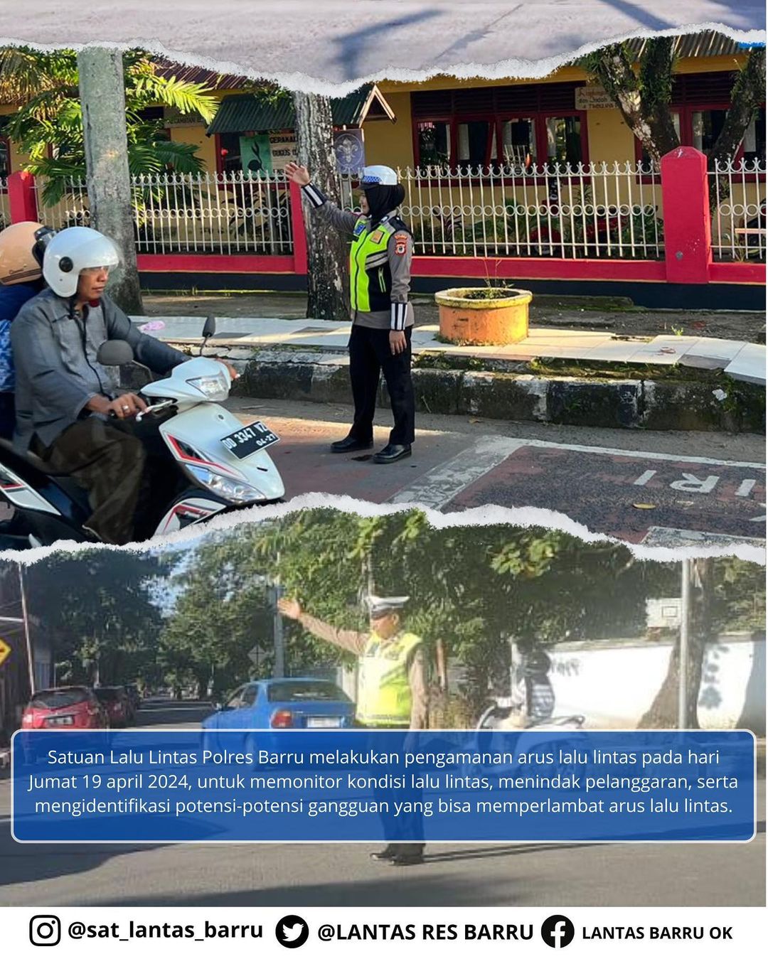 BARRU – Personil Sat Lantas Polres Barru melaksanakan Pengamanan dan Pengaturan Arus lalulintas di beberapa titik di wilayah hukumnya. Jum’at (19/04/2024).