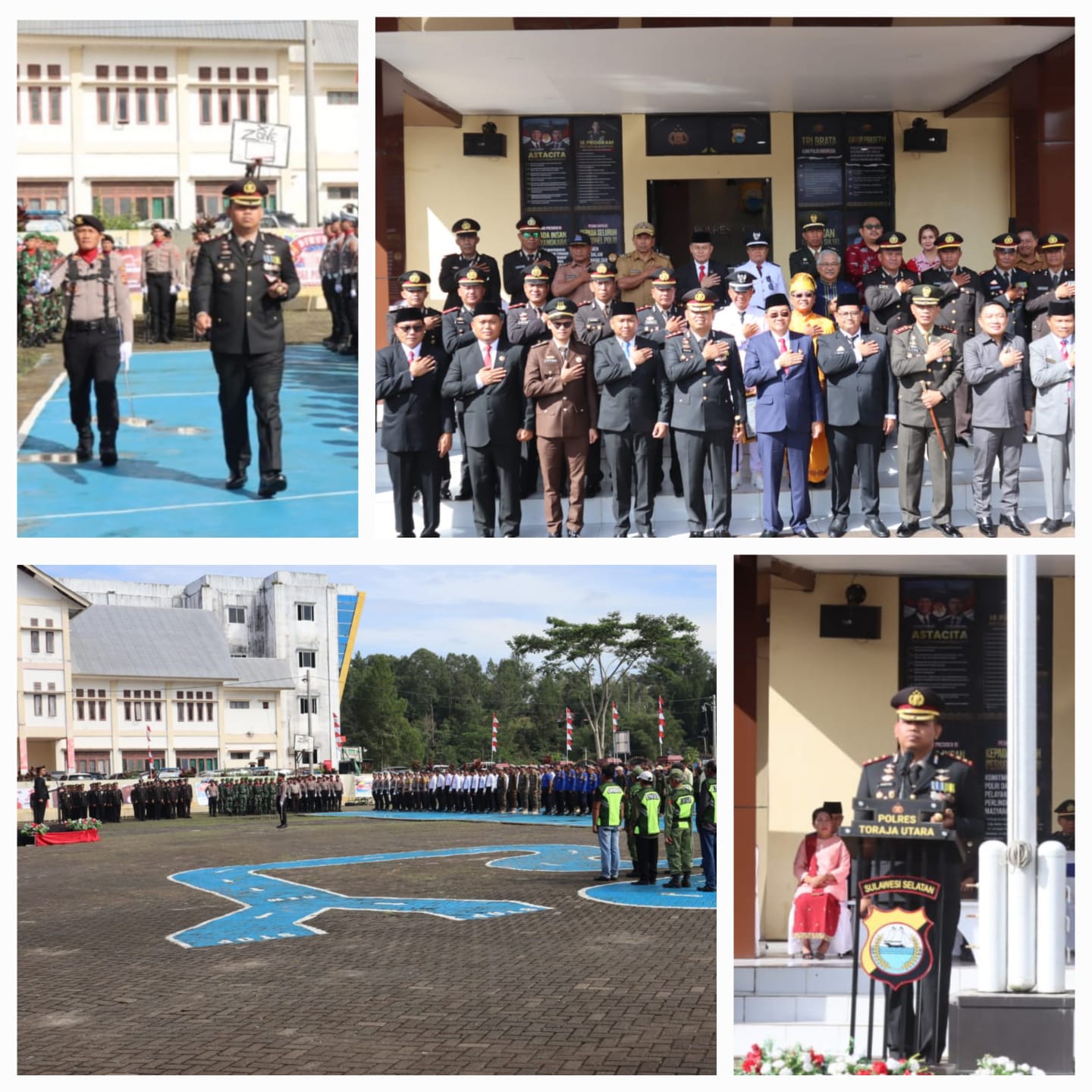 Dalam sambutan yang dibacakan, Kapolres Toraja Utara AKBP Stephanus Luckyto A.W, S.I.K., S.H., M.Si, selaku Inspektur mengungkapkan bahwa Hari Bhayangkara bukan sekadar seremoni, melainkan momentum refleksi bagi seluruh anggota Polri.