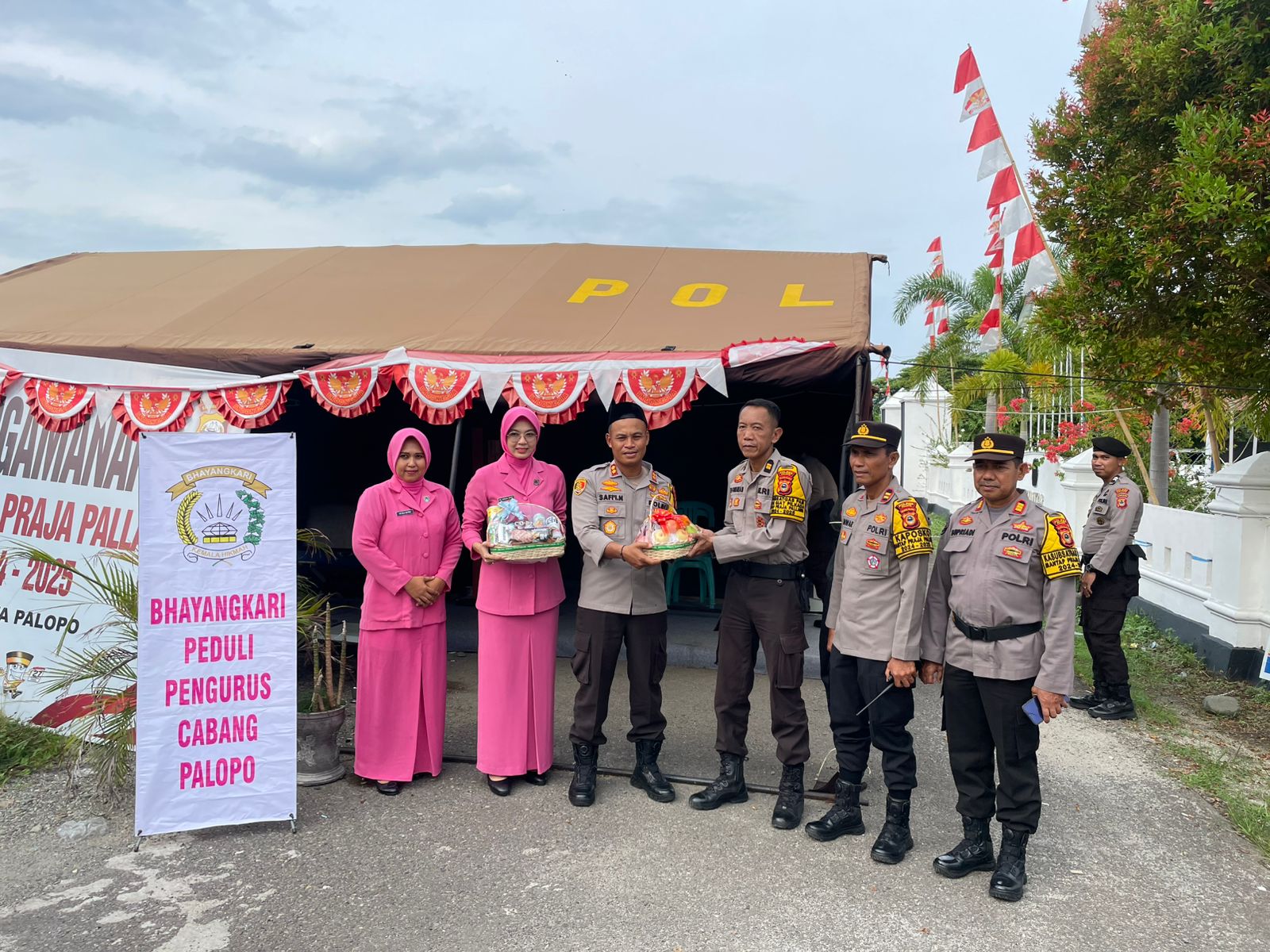PALOPO – Bhayangkari Polres Palopo melakukan kegiatan Tali Asih di Pos Pengamanan Kantor KPU Kota Palopo, Jl. Pemuda, Kelurahan Takkalala, Kecamatan Wara Selatan, Senin, 21 Oktober 2024.