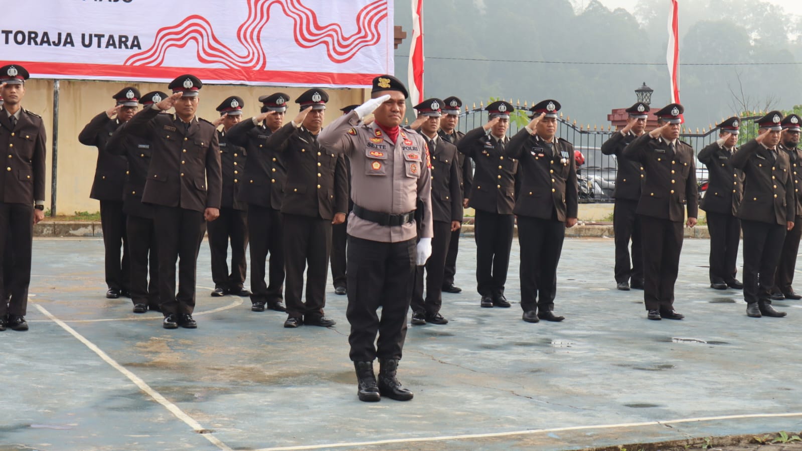 Polres Toraja Utara Polda Sulsel menggelar Upacara Pengibaran Bendera Merah Putih dalam rangka memperingati Hari Ulang Tahun (HUT) ke-79 Kemerdekaan Republik Indonesia.