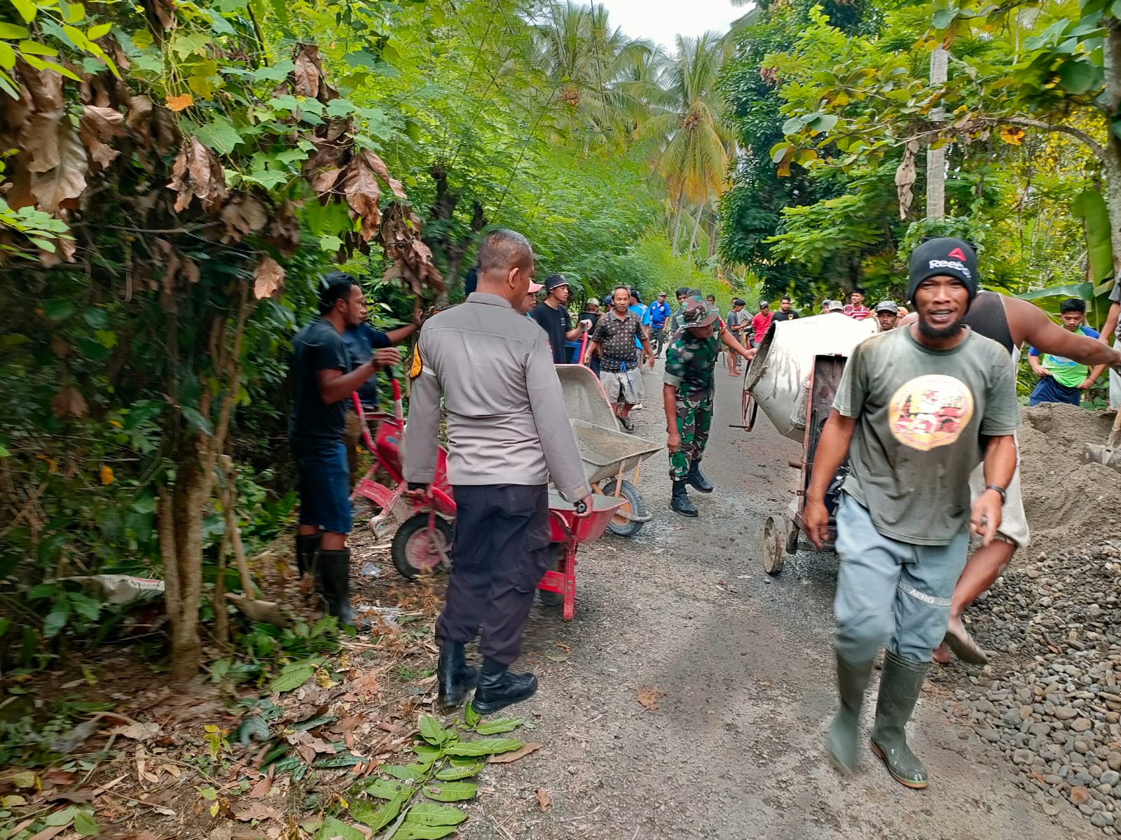 Dalam kegiatan kerja bakti ini, Bripka Ahmadi terlihat aktif membantu warga. Salah satu momen yang menarik adalah ketika Bripka Ahmadi mendorong gerobak berisi campuran semen untuk perbaikan jalan di wilayah binaannya. Perbaikan jalan ini diharapkan dapat meningkatkan akses dan kenyamanan warga dalam beraktivitas sehari-hari.