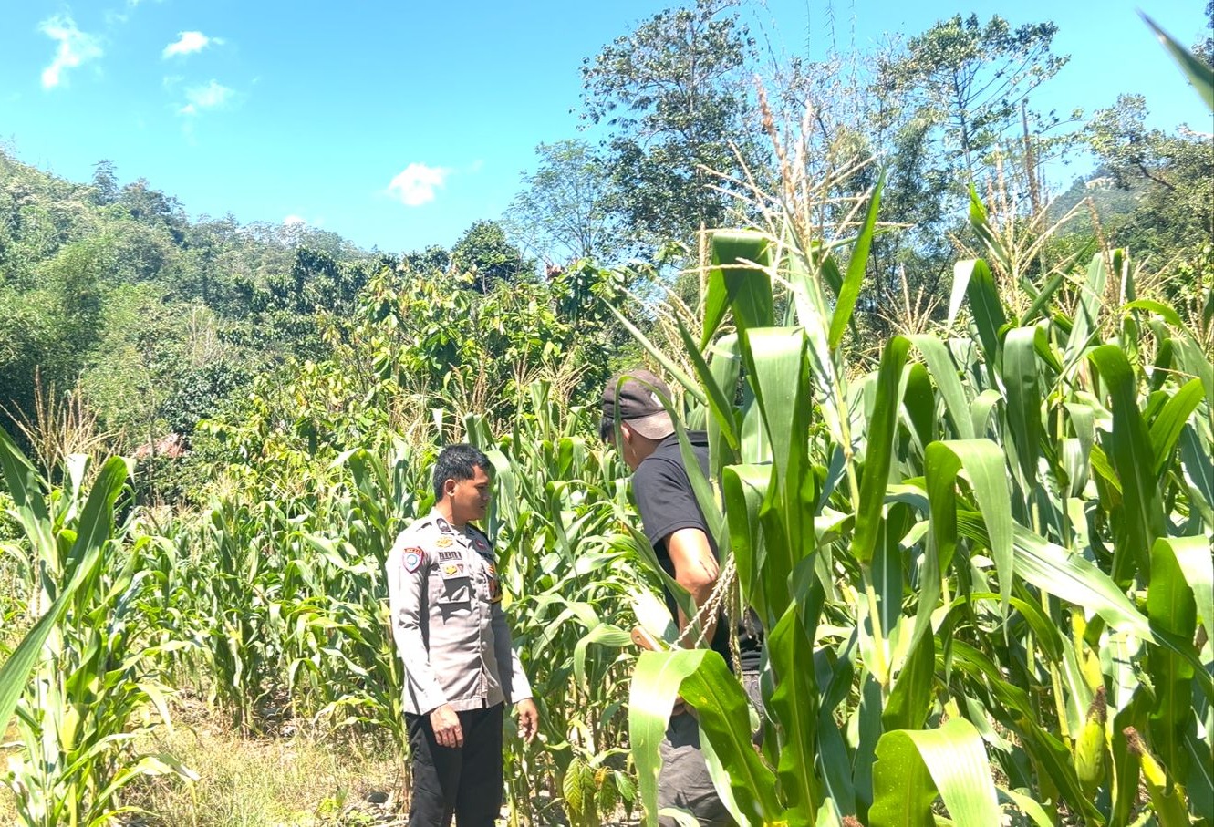 Polres Majene – Dalam rangka mendukung program ketahanan pangan, Bhabinkamtibmas Polsek Malunda Bripda Fahrurrijal melaksanakan pengecekan tanaman jagung milik warga binaannya di Dusun Kolehalang, Desa Panggalo, Kecamatan Ulumanda, Selasa (21/4/26).