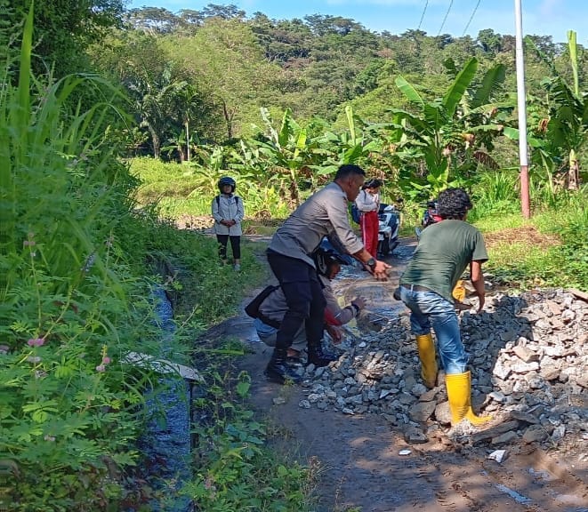 Bhabinkamtibmas Polsek Bonggakaradeng Bersama Warga Gotong Royong Perbaiki Jalan Rusak, Wujud Nyata Aksi Polri Peduli Lingkungan