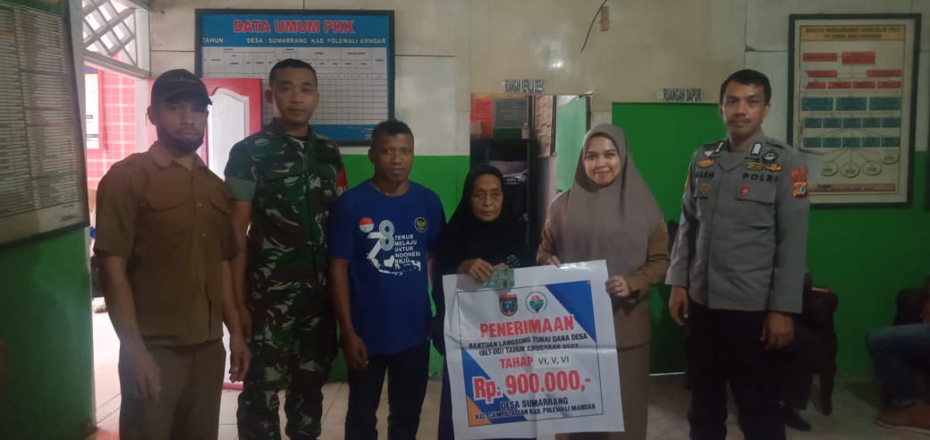 POLMAN – Bhabinkamtibmas Desa Sumarrang Bripka Rahmat Saleh monitoring penyaluran BLT DD Sumarrang, tahap II bulan 4, 5 dan Bulan 6, Adapun penerima BLT DD Sumarrang dikantor Desa Sumarrang Kec.Campalagian Kab. Polman. Senin (08/07/24)