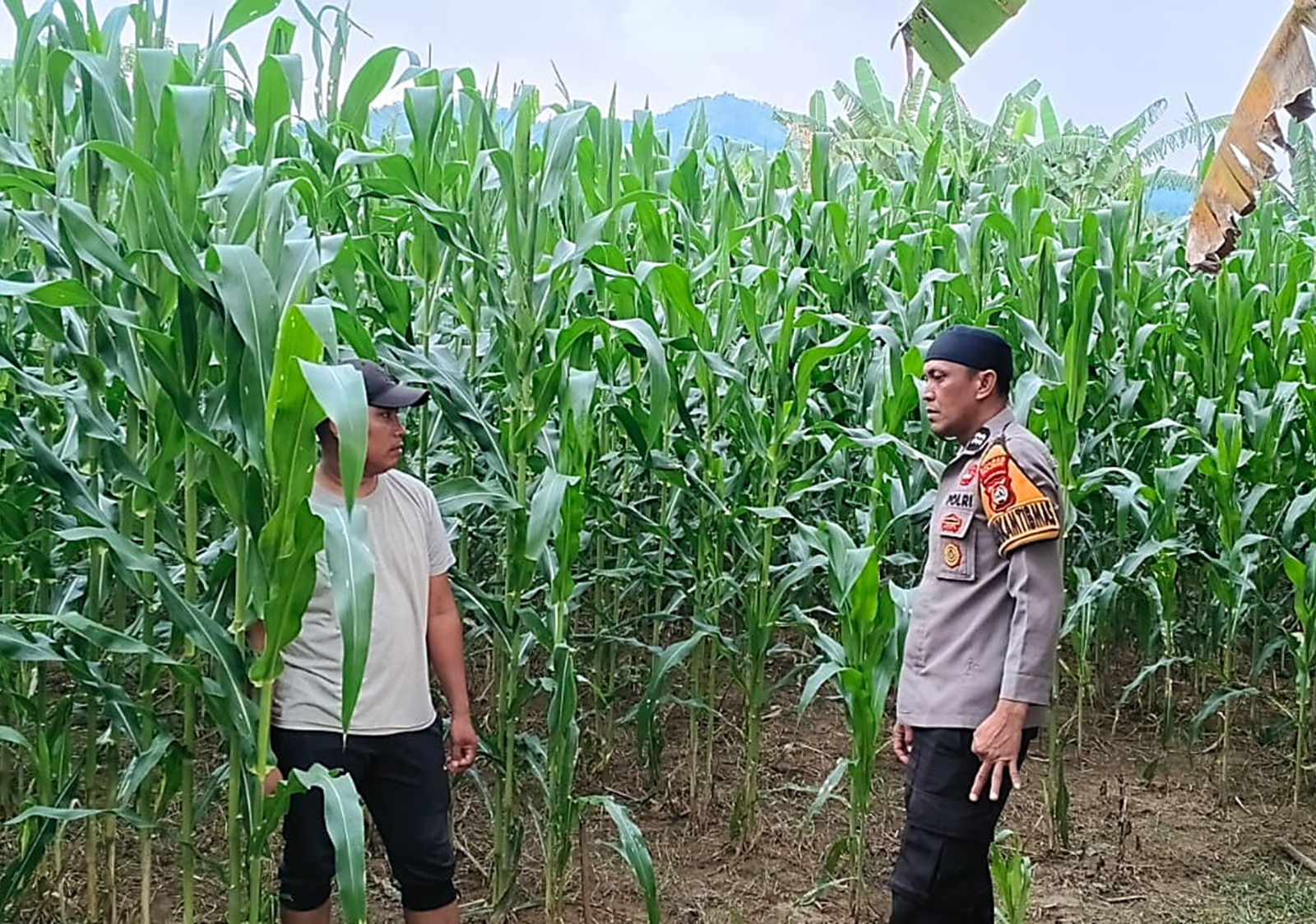 Dalam kegiatan tersebut, Aiptu Erwin bersama para petani meninjau kondisi tanaman jagung yang kini telah memasuki usia dua bulan. Tanaman yang dibudidayakan di lahan seluas 30 meter persegi tersebut tampak tumbuh subur, menandakan perawatan yang optimal dari para petani setempat.