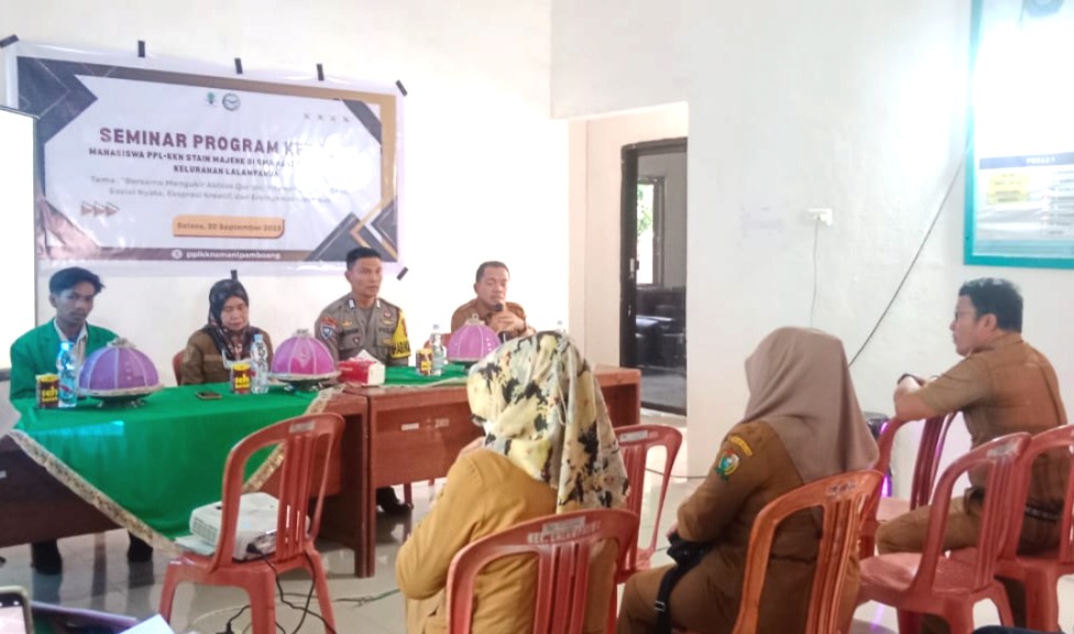 Polres Majene – Sebagai wujud dukungan terhadap dunia pendidikan dan pengabdian masyarakat, Bhabinkamtibmas Polsek Pamboang Kelurahan Lalampanua, Bripka Kasmin, menghadiri kegiatan seminar program kerja PPL–Kuliah Kerja Nyata (KKN) Mahasiswa Universitas STAIN Majene Angkatan VI.