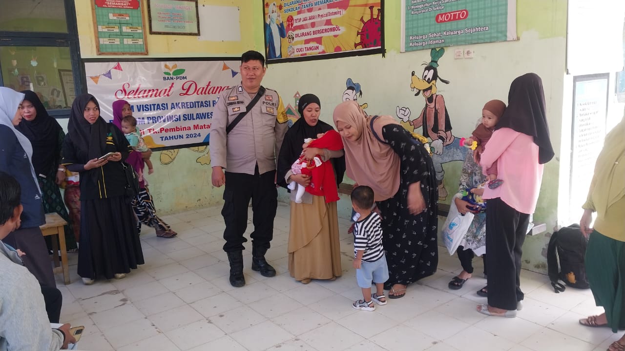 POLMAN – Bhabinkamtibmas Kel. Matakali Bripka Chandra Kirana bersama kader posyandu memantau pelaksanaan Posyandu Centing dan kelas ibu hamil di Lingkungan matakali Kelurahan Matakali, Kec. Matakali Kab. Polman. Senin (15/07/24)