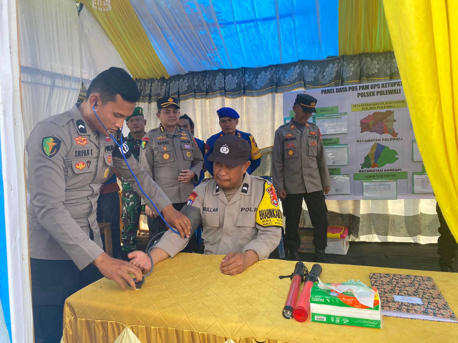Sejumlah personil pun di kerahkan utnuk melaksanakan monitoring terhadap kesehatan personil Polri yang bertugas pada Operasi Ketupat Marano 2024. Minggu 7 April 2024