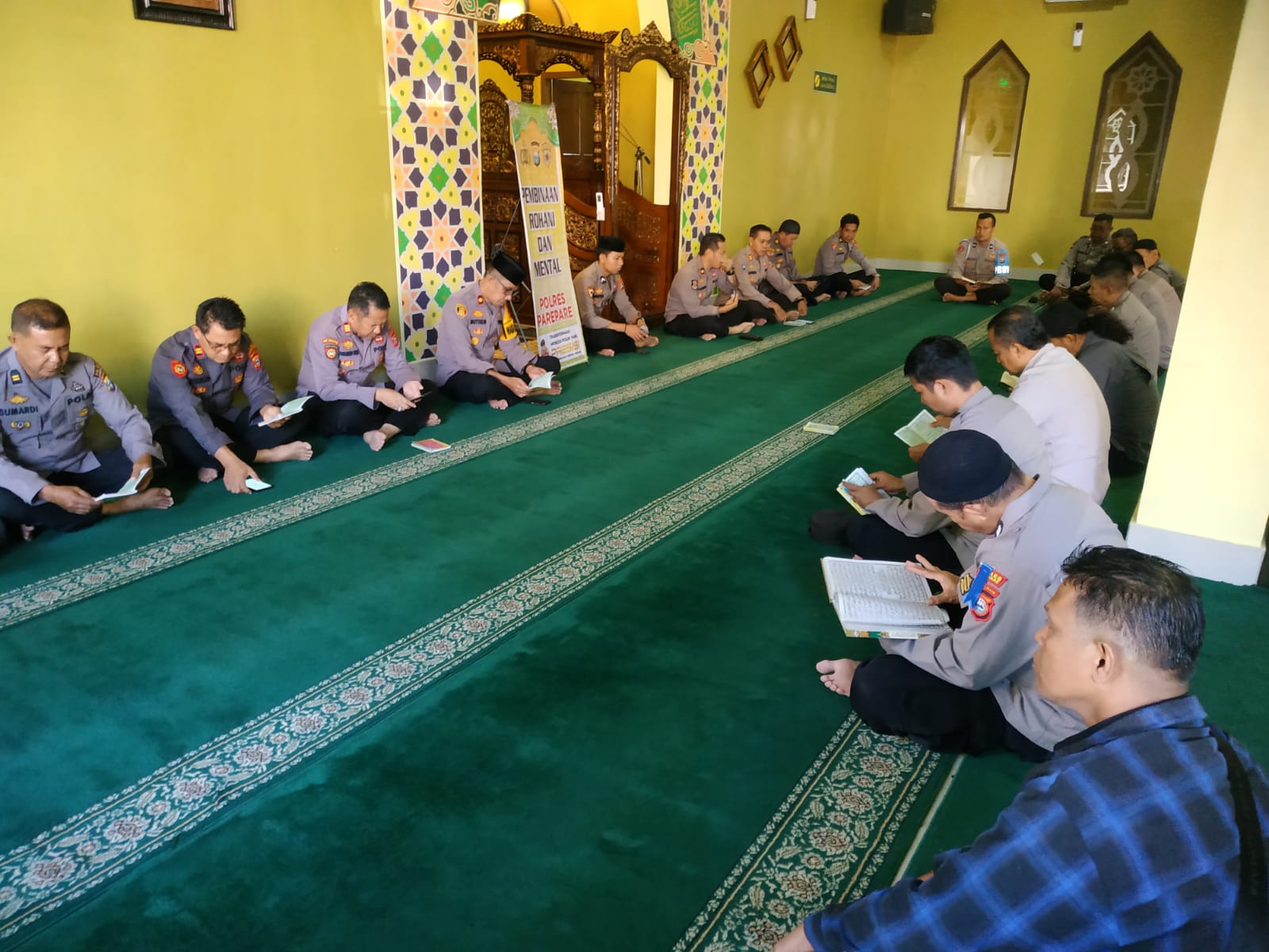Parepare — Bina Rohani dan Mental sebagai penunjang dalam melaksanakan tugas rutin kepolisian, Polres Parepare melakukan kegiatan Yasinan di Masjid Baiturrahman, area kompleks Aspol 1 Mapolres Parepare. Kamis (18/7/2024).