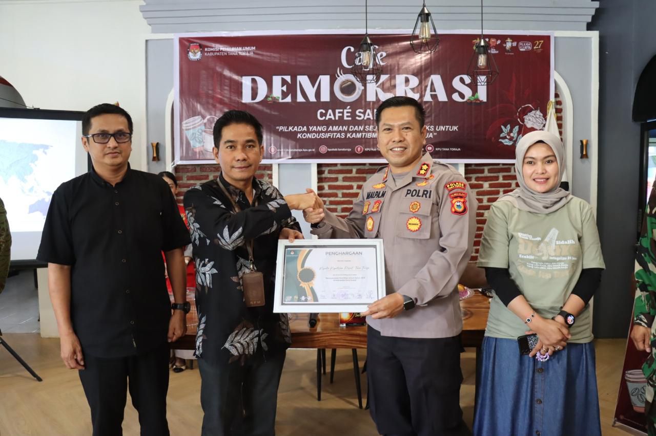 TANA TORAJA – Kapolres Tana Toraja AKBP Malpa Malacoppo hadiri acara yang digelar KPU Tana Toraja melalui Cafe Demokrasi sebagai pemateri dengan topik “Pilkada Aman Dan sejuk Tanpa Hoaks untuk Kondusifitas Kambtimbas Tana Toraja” di Cafe Sanmori kelurahan Tambunan Kecamatan Makale Utara Kabupaten Tana Toraja, Jumat (19/07/2024) pagi.