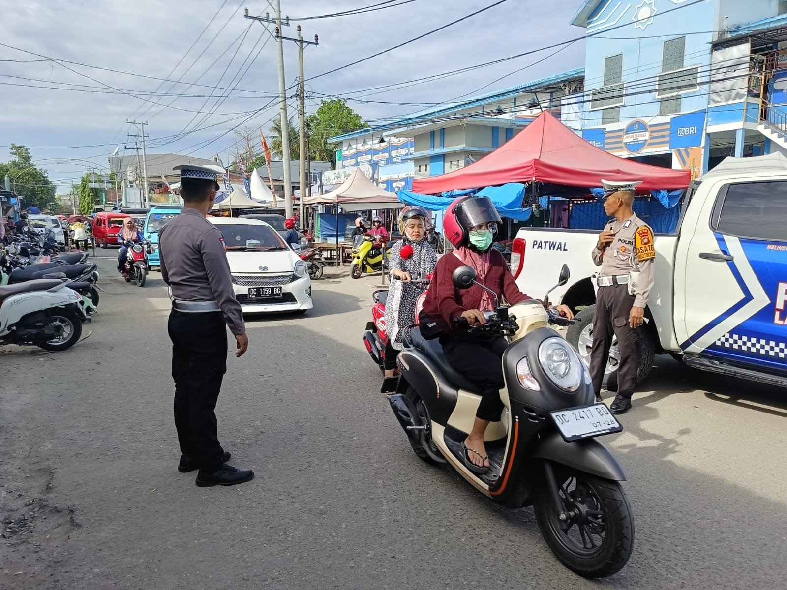 Dipimpin Kanit Patroli Bripka M. Ishak yang melibatkan personil lalulintas lainnya melaksanakan pengaturan lalu lintas sembari melakukan rekayasa jalan agar pengunjung dapat masuk dan keluar dari area pasar dengan lancar.