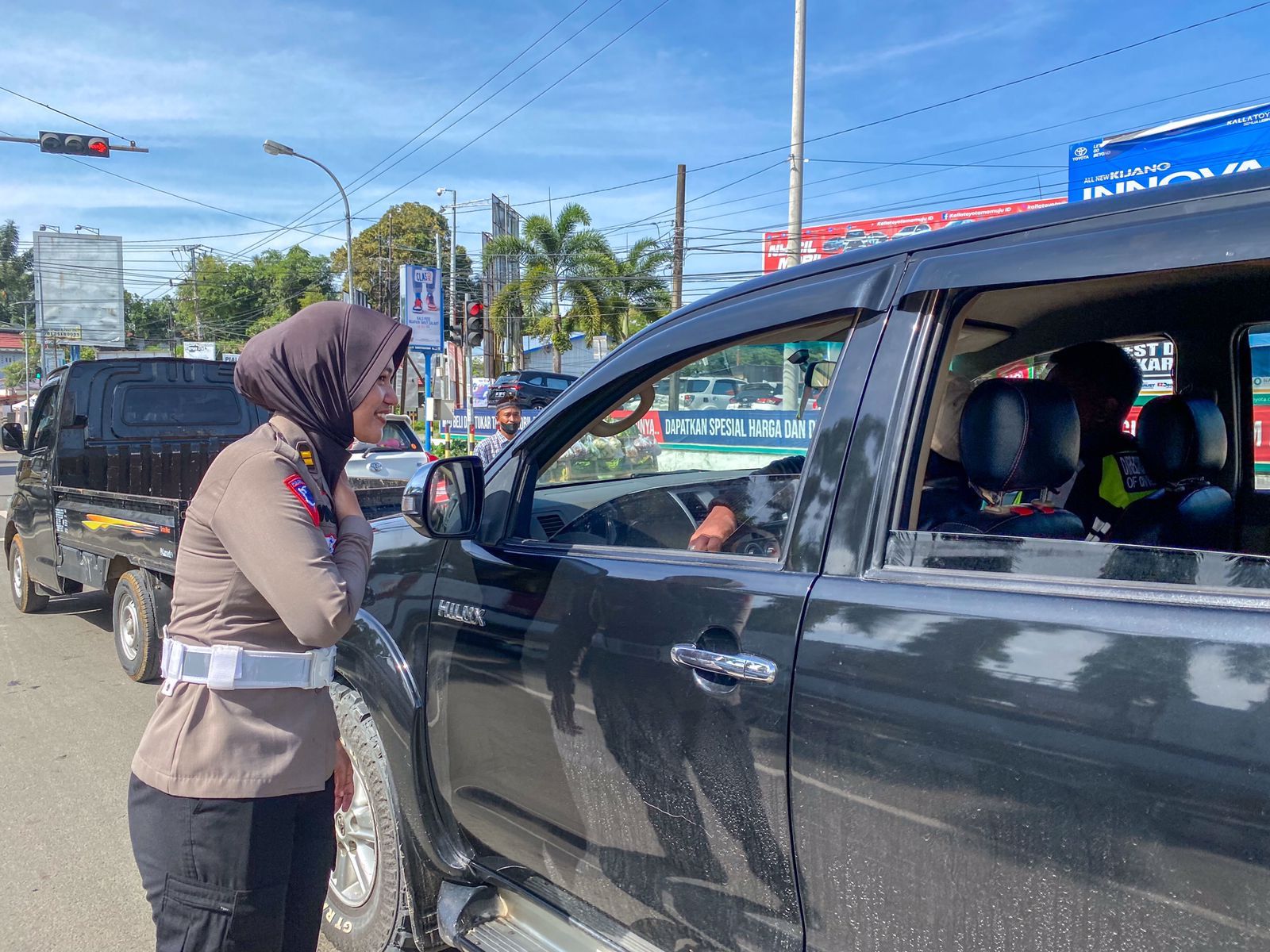 Terlihat hari ini, Selasa (21/5/24) Iptu Novera bersama para Srikandi lainnya tetap hadir memberikan pelayanan dengan mengatur arus lalu lintas meski dibawa terik matahari.