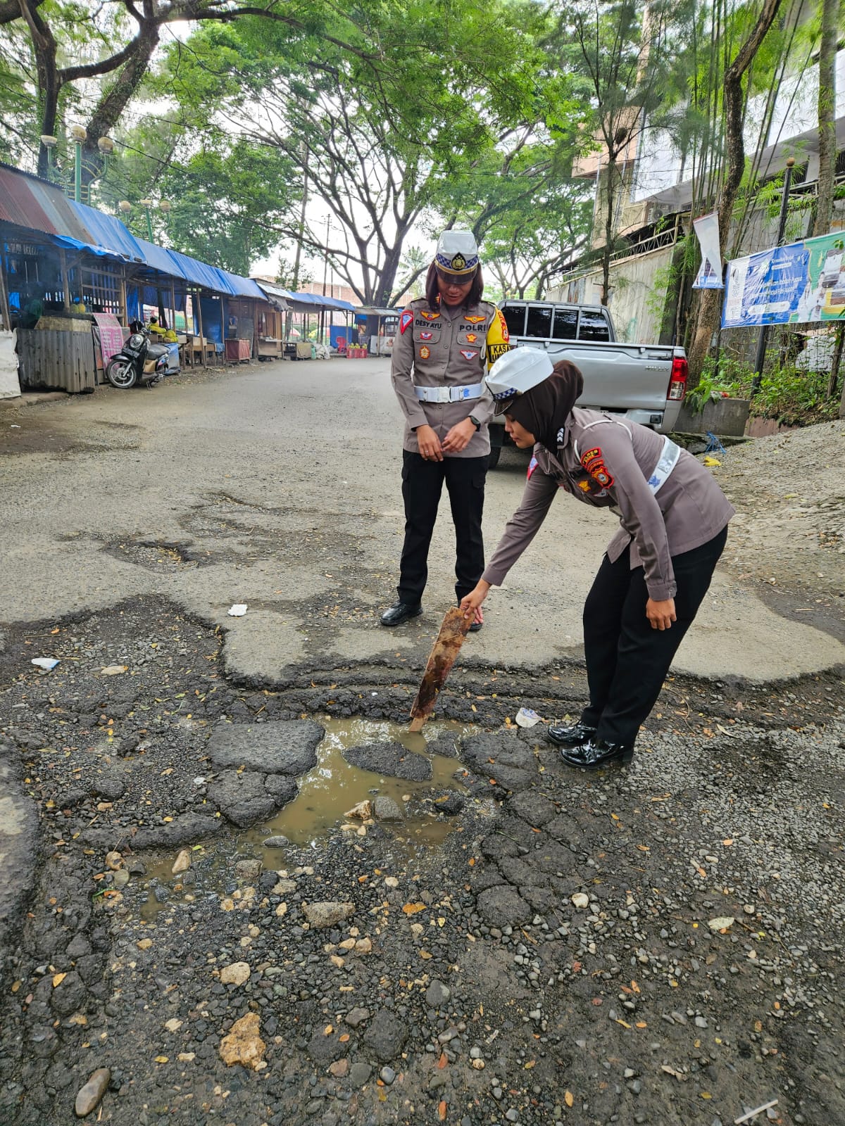 Kasat Lantas Polres Bone AKP Desy Ayu Dwi Putri, turun langsung melaksanakan survey jalan rusak dan berlubang, ruas jalan yang didatangi diantaranya di Jl Mangga dan Jl Langsat.