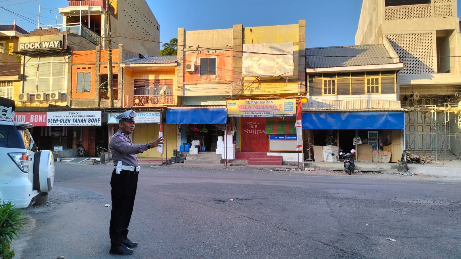 Personel melaksanakan giat pelayanan kepada masyarakat pengaturan, penjagaan, dan pengawasan arus lalu lintas, dibeberapa titik jalan diantaranya di Jl. Veteran – Jl. Makmur, Watampone, Kabupaten Bone.