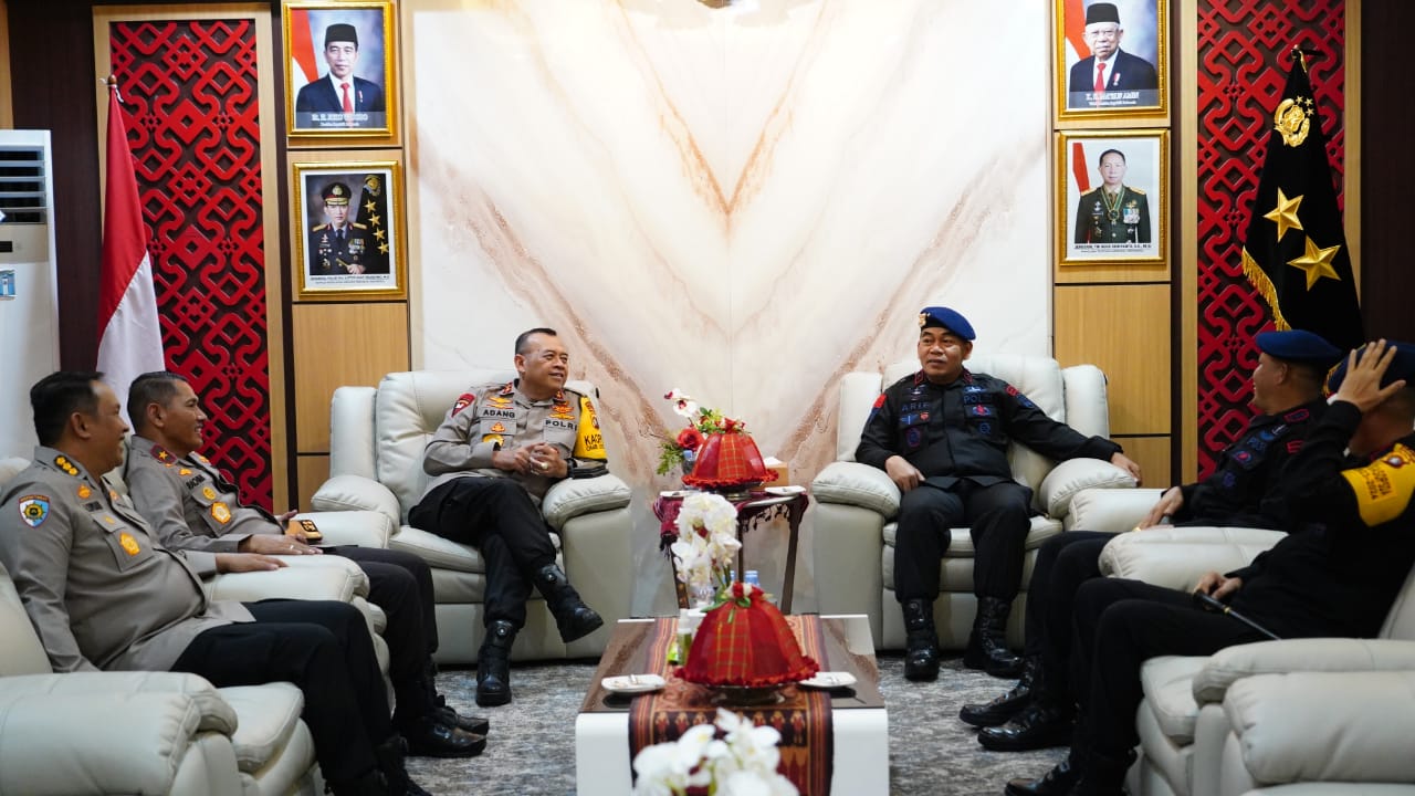 Polda Sulbar – Berkunjung ke Markas Komando Polda Sulbar (Danpas) Brimob II Brigjen Pol. Arif Budiman, mendapat sambutan hangat dari Kapolda Irjen Pol Adang Ginanjar bersama Wakapolda Brigjen Pol Rachmat Pamudji beserta pejabat utama lainnya seperti Irwasda, Karoops dan Dirsamapta, Kamis (1/2/24).