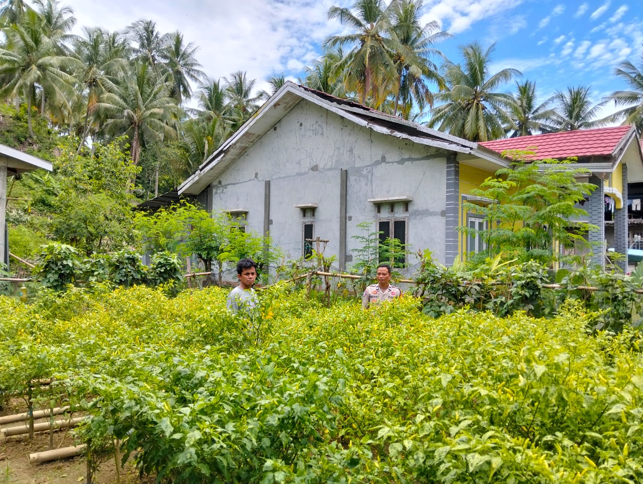 Kegiatan tersebut merupakan bagian dari peran aktif Bhabinkamtibmas sebagai penggerak ketahanan pangan di wilayah binaannya. Dengan turun langsung ke lapangan, Aiptu Muchlis Nur tidak hanya memastikan perkembangan tanaman cabai berjalan baik, tetapi juga memberikan motivasi serta pendampingan kepada warga agar terus semangat mengelola lahan secara produktif.