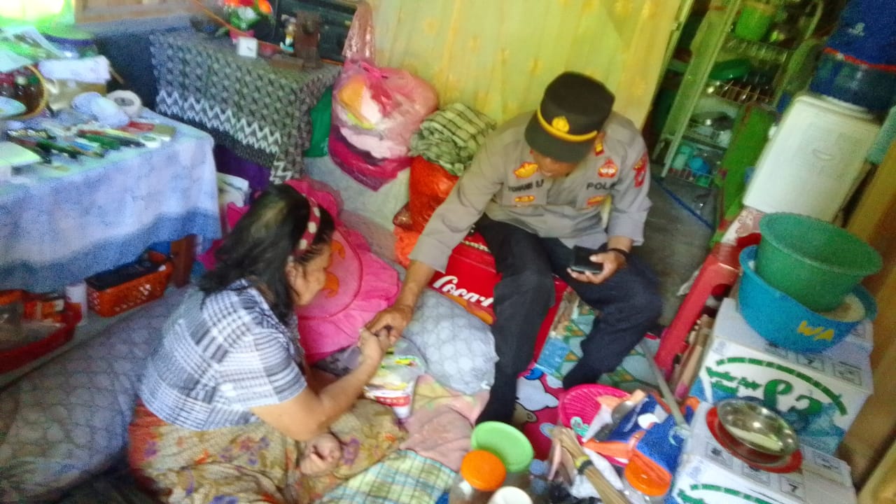 Dekatkan Diri Dengan Masyarakat, Bhabinkamtbmas Berikan Bantuan Sembako Dan Santunan Warganya Yang Sakit
