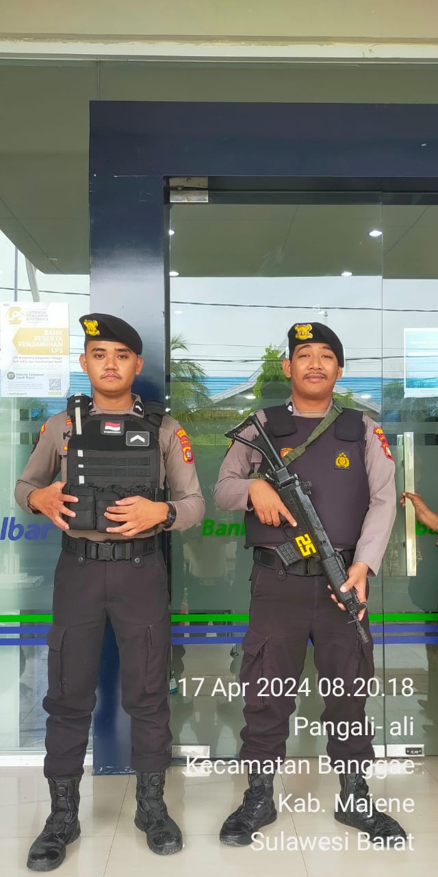 Demi terciptanya situasi yang kondusif di tiap area Bank BRI, BNI dan BANK SULSELBAR. Satuan Samapta Polres Majene menempatkan personel Satuan Samapta Polres Majene untuk mengamankan Objek Vital disekitar Area tersebut diantaranya BANK BRI. BNI dan SULSELBAR Cabang Majene.