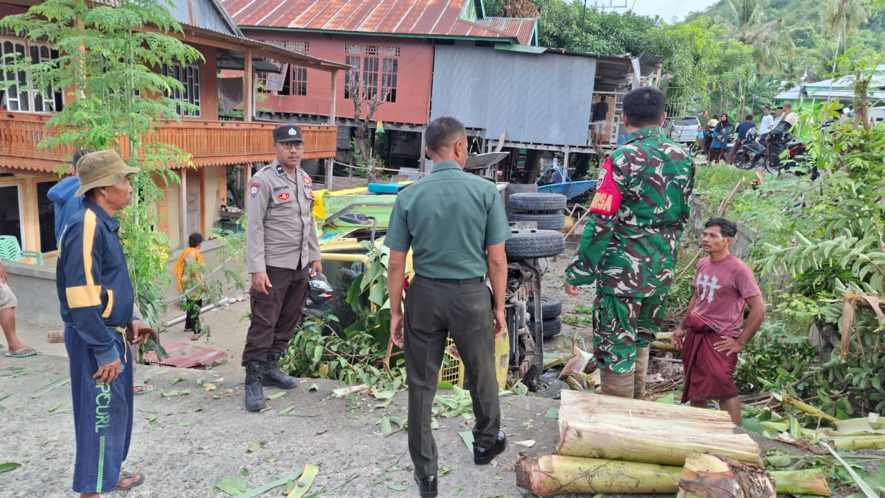 Sebuah truk Mitsubishi Canter warna kuning bernomor polisi DD 8738 MT yang dikemudikan Hendra Wahyudi (24), warga Dusun Pohayam, Sumberjo, Wonomulyo, Kabupaten Polewali Mandar, terguling usai menabrak sebuah ruko milik warga setempat.