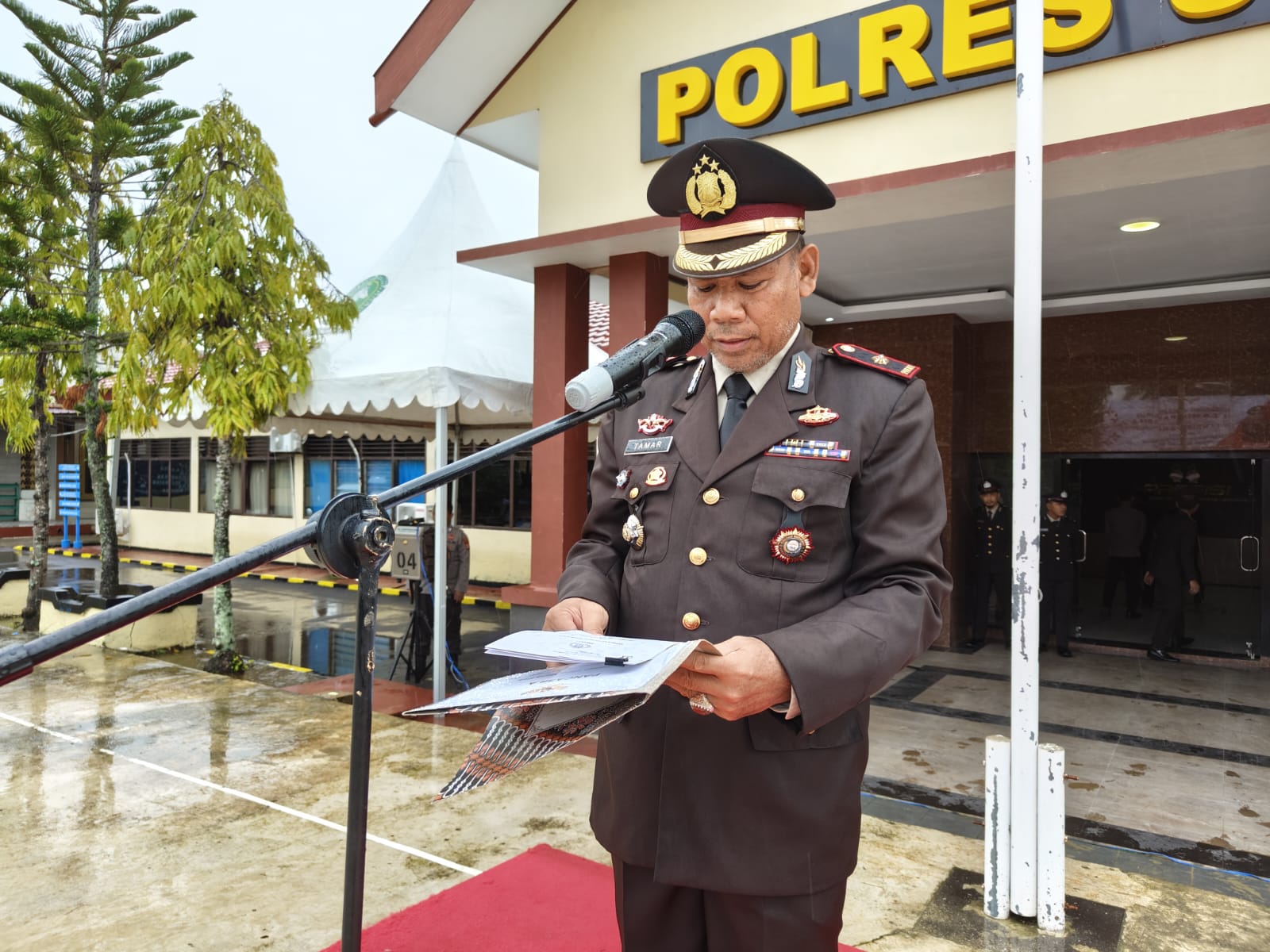 “Kepada seluruh peserta upacara untuk menanamkan nilai-nilai Pancasila dalam kehidupan sehari-hari, baik dalam pelaksanaan tugas sebagai anggota Polri maupun dalam kehidupan bermasyarakat. Ia menekankan bahwa Pancasila merupakan dasar Negara dan ideologi yang harus terus dijaga serta diimplementasikan demi keutuhan NKRI.