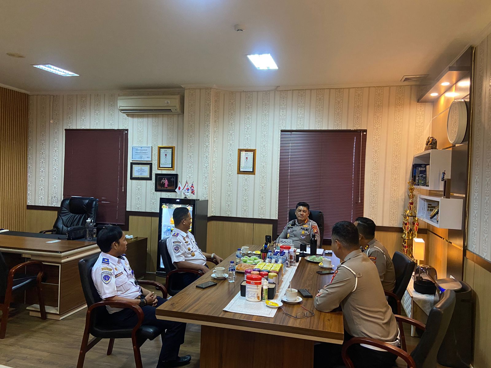 Polda Sulbar – Direktur Lalu Lintas (Dirlantas) Polda Sulawesi Barat, Kombes Pol Wahid Kurniawan, didampingi Kasubdit Kamsel dan Kasubdit Regident, menerima kunjungan silaturahmi Kepala Balai Pengelola Transportasi Darat (BPTD) Sulawesi Barat di ruang kerjanya, Rabu (21/5/2025).