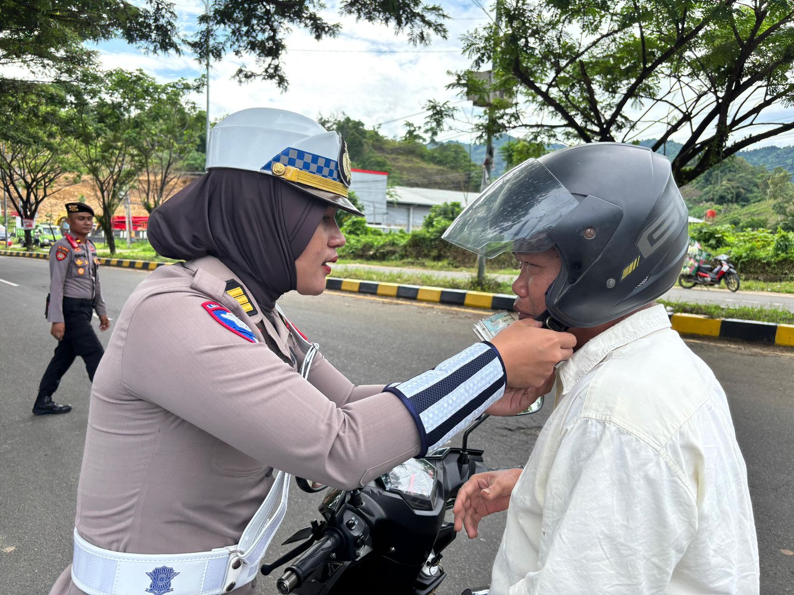 Pada hari keempat pelaksanaan operasi, Kamis (17/10/24), personel Ditlantas Polda Sulbar kembali melakukan razia di berbagai titik lokasi, salah satunya di Jalan Ir. Juanda, Kelurahan Mamunyu, Kabupaten Mamuju. Selain memeriksa setiap pengendara yang melintas, para petugas juga memberikan himbauan penting untuk meningkatkan kesadaran keselamatan di jalan raya.