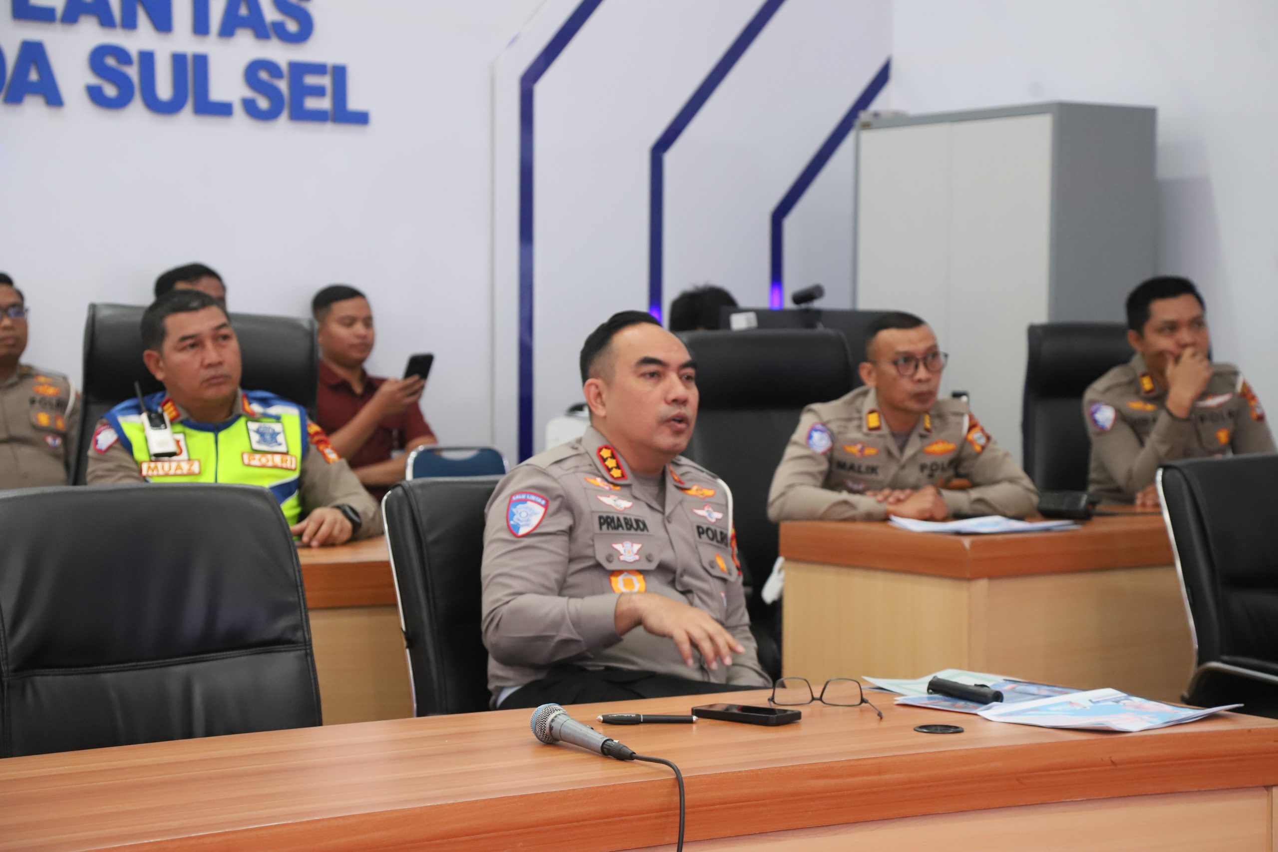 Kegiatan tersebut dipimpin langsung oleh Dirlantas Polda Sulsel, Pria Budi, serta dihadiri oleh sejumlah pejabat dan personel lalu lintas dari jajaran, antara lain Kasubdit Gakkum Ditlantas Polda Sulsel, Kasat PJR, Plh. Kabagbinops, Wakasatlantas Polrestabes Makassar, serta para Kasatlantas dari wilayah Pelabuhan Makassar, Gowa, dan Maros.