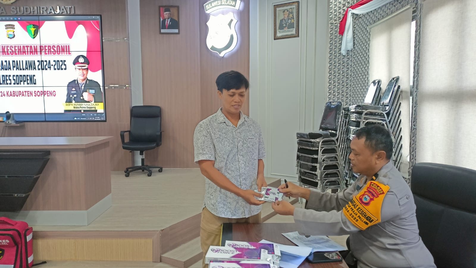 Soppeng-Sie Dokkes Polres Soppeng menggelar pemeriksaan kesehatan (Rikkes) bagi personel Polres maupun Polsek Jajaran yang terlibat dalam Operasi Mantap Praja Pallawa 2024-2025 Bertempat di Aula tantya Sudihirajati Polres Soppeng.Rabu 16 Oktober 2024.