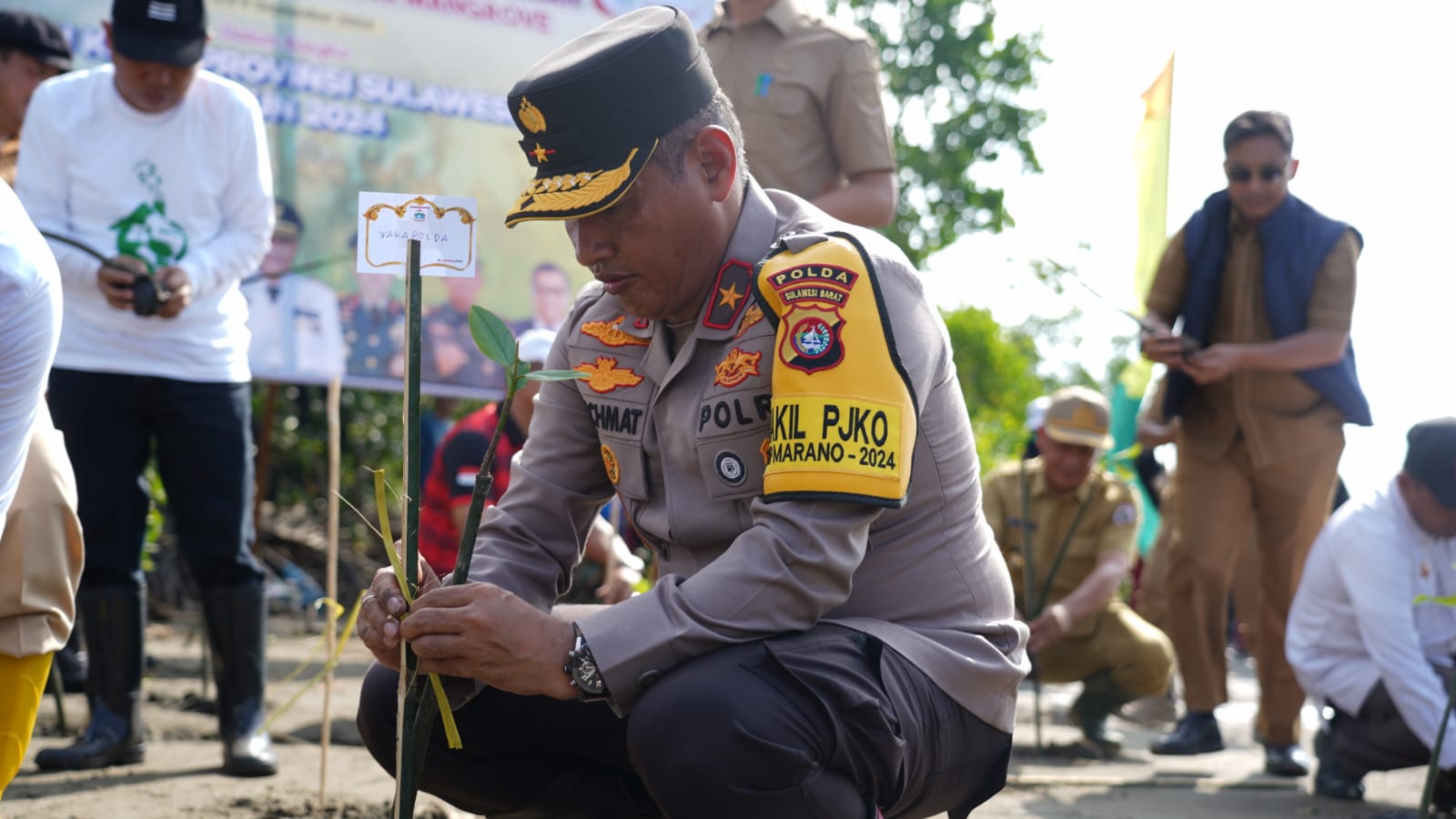Polda Sulbar – Hadir dalam aksi penanaman mangrove dan pencanangan Sulbar sepekan tanam pohon yang diselenggarakan oleh Pemerintah daerah dalam Hari Jadi ke-20 Provinsi Sulbar, Wakapolda Sulbar Brigjen Pol Rachmat Pamudji turut memberikan dukungan penuhnya. Pihaknya juga mengajak seluruh pihak untuk ikut andil melestarikan alam.